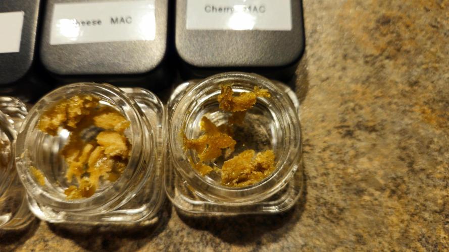 The trichomes on this strain look like they are stacking up, one on top of the other till thc drops apear on the buds.