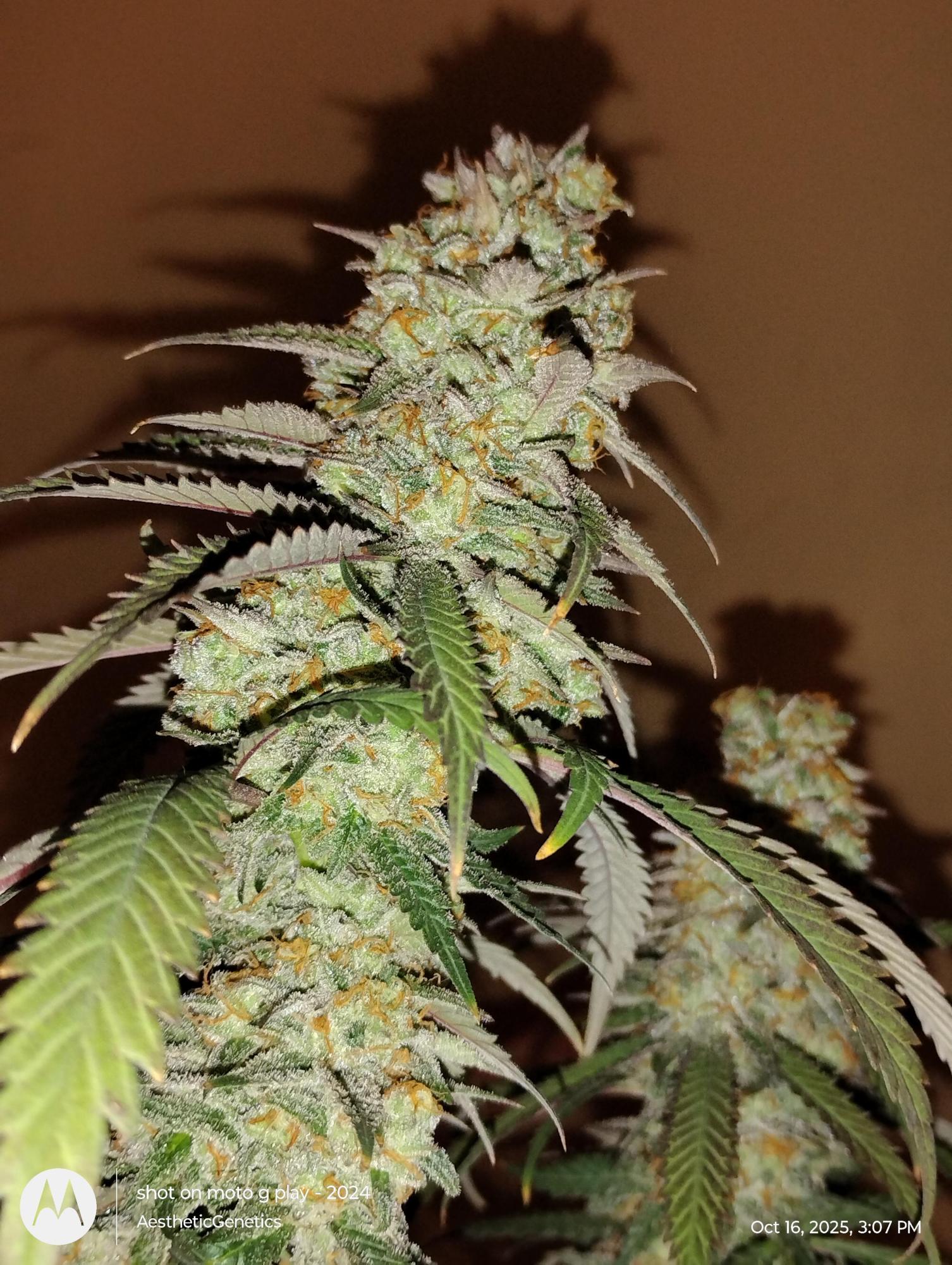 Blueberry Muffin is a company favorite. This seed produces plants that grow uniformly and produce frosty colas highlighted with purple flakes. The buds smell powerfully like fresh baked blueberry muffins, making the naming of this strain a piece of… muffin. The smoke is energizing and good for relieving pain due to arthri- tis and ulcers.