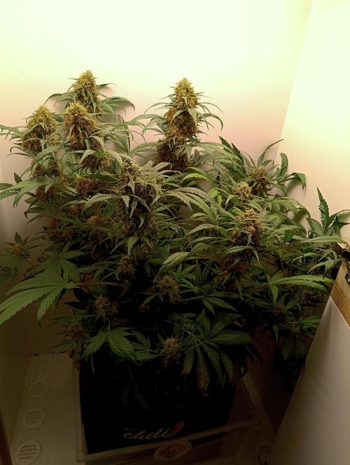 This strain is one of the largest yielding strains available on the market today—so heavy the branching may need bracing so it doesn’t break off under the pressure of its own weight. To optimize the yield of this strain prune carefully and watch out for humidity issues.