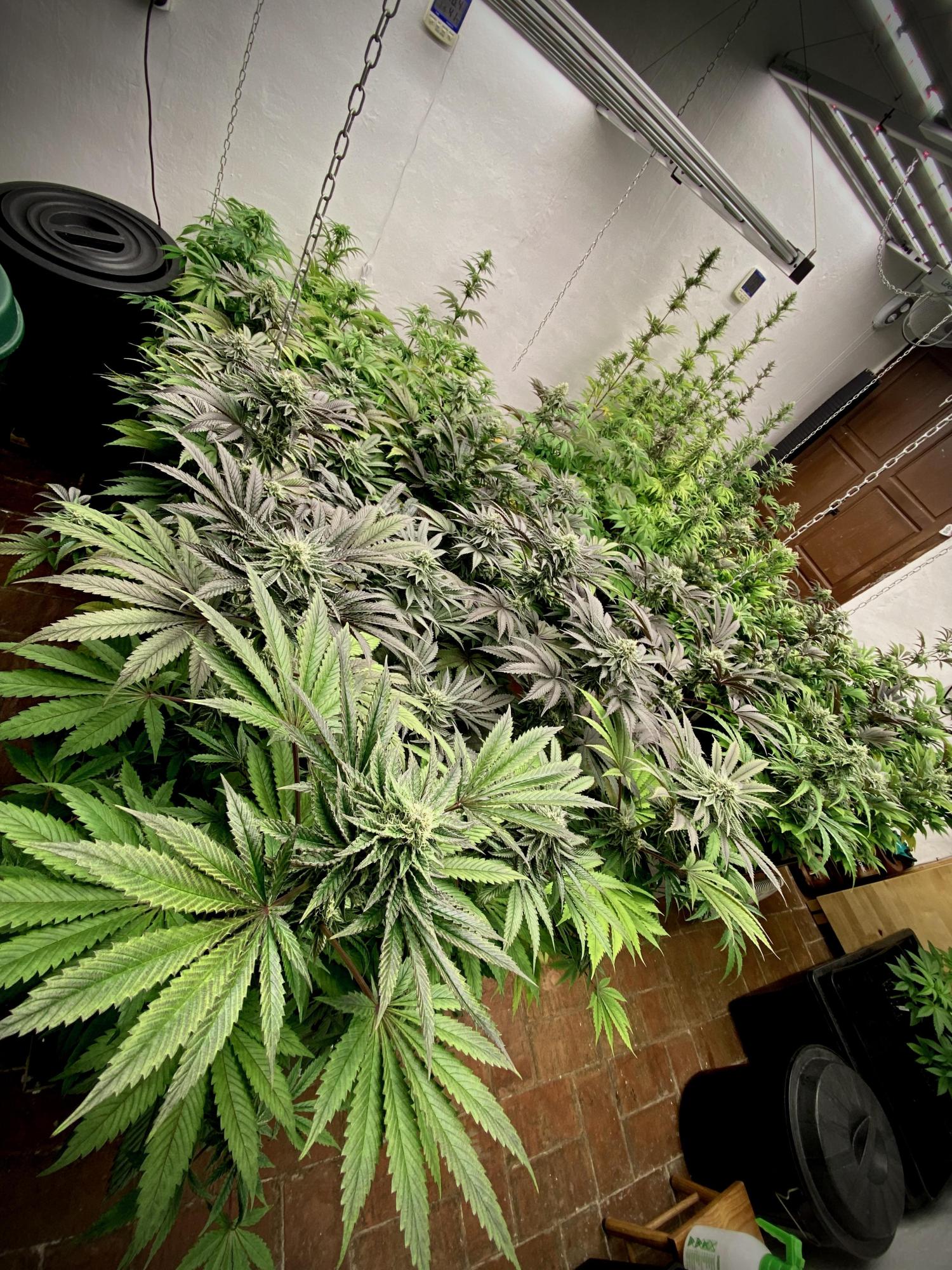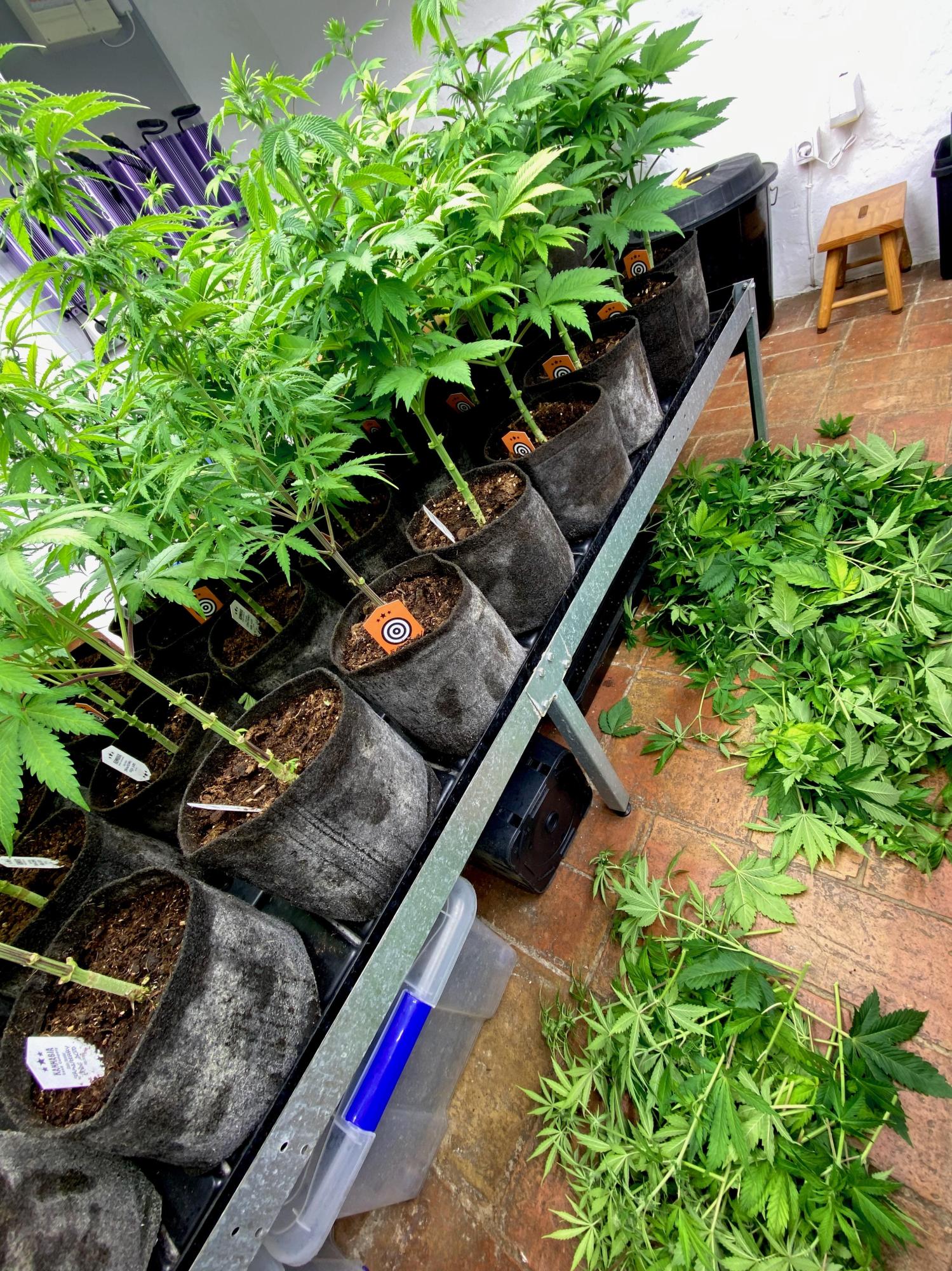 Kannabia Mataró Blue the most difficult genotype in our entire catalogue is a three-way cross featuring the best of several predominantly indica strains. One of these is one of the most indica-rich Blueberries that we have, with a very high yield and maintaining all the properties that this variety is known for (short height, fast flowering and a bluish tone). Another of the components is an original Afghan (Mazar-i-Sharif), a very good resin producer that also gives a generous harvest. The final ingredient in this indica cocktail is our Black Domina, which gives it a more ramified structure when grown outdoors or indoors in seven-to-ten-litre pots, and more height than the results of the first crosses. Even so, the plant forms a thick central bud, hardening because of the number of flowers that form overlapping bunches. The plant starts to form crystals as soon as it begins to flower, eventually becoming covered in a thick coat of sticky resin, like large drops of caramel. It immediately produces trichomes with lime-green heads, and by the time it has nearly finished it has a whitish/golden appearance with a penetrating smell. When subjected to low temperatures the colour turns a bluish purple. It forms thick, healthy cuttings that are suitable for cloning. Median nodes develop with huge, fat leaves. It withstands large amounts of fertiliser when growing and is resists to periods of drought very well. Indoors we recommend using a lot of wattage to optimise the crop’s results (800W/m2). The recommended vegetative cycle indoors is two weeks for a good yield. With hydroponic systems the results are particularly impressive and quick to ripen. It works very well outdoors, occupying a circumference of several square metres. We recommend propping it well to support the weight of the buds. With good pruning, the plants will grow into large bushes up to 2 m tall. The flowering cycle is 58-65 days, so it will be ready for harvesting in early September. We recommend using carbohydrates to bring out all the flavour. The smell is very deep, with a hint of bitter orange. The high is fast and deep, lifting you up and making you float before firmly bringing you back. Very high THC levels. Produces a very strong hash when extracted with ice.
