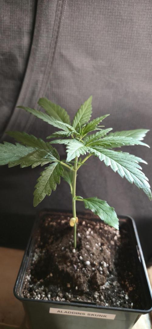 The Aladdin's Skunk is a pure Skunk#1 strain originating from Sacred Seed Co in the early 1970s and later introduced to Holland by Sam the Skunkman. This strain is renowned as one of the first indoor varieties. It is known for its balanced effects, good yields, and exceptional stability, making it a favorite among breeders, contributing to strains like Jack Herer, Critical, and Super Silver Haze. This Aladdin's Skunk selection is a pure inbred line (IBL) and boasts both genetic and sexual stability. It offers uniform characteristics in smell, bud structure, and flowering time, although plant height can vary. Contrary to its name, the original Skunk#1 has a sweet, slightly fruity aroma. The Aladdin's Skunk exhibits a mix of indica and sativa traits. It has a fast flowering time, typically ready for harvest by late September. The plants stretch more than Afghanicas, with foxtail-style buds. They often develop leaves with double serrations and have a high calyx-to-leaf ratio, along with abundant trichomes, resulting in a gooey, greasy resin. This strain is easy to trim and has excellent bag appeal with glistening, sticky Skunk flowers and bright orange hairs. The flavor mirrors the aroma, delivering sweetness with fruity undertones. The effects are strong, initially euphoric and uplifting, evolving into a long-lasting, relaxing sensation. The Aladdin's Skunk, a classic from the 1970s, remains a popular choice, ideal for beginners and breeders seeking a stable strain for cultivation.