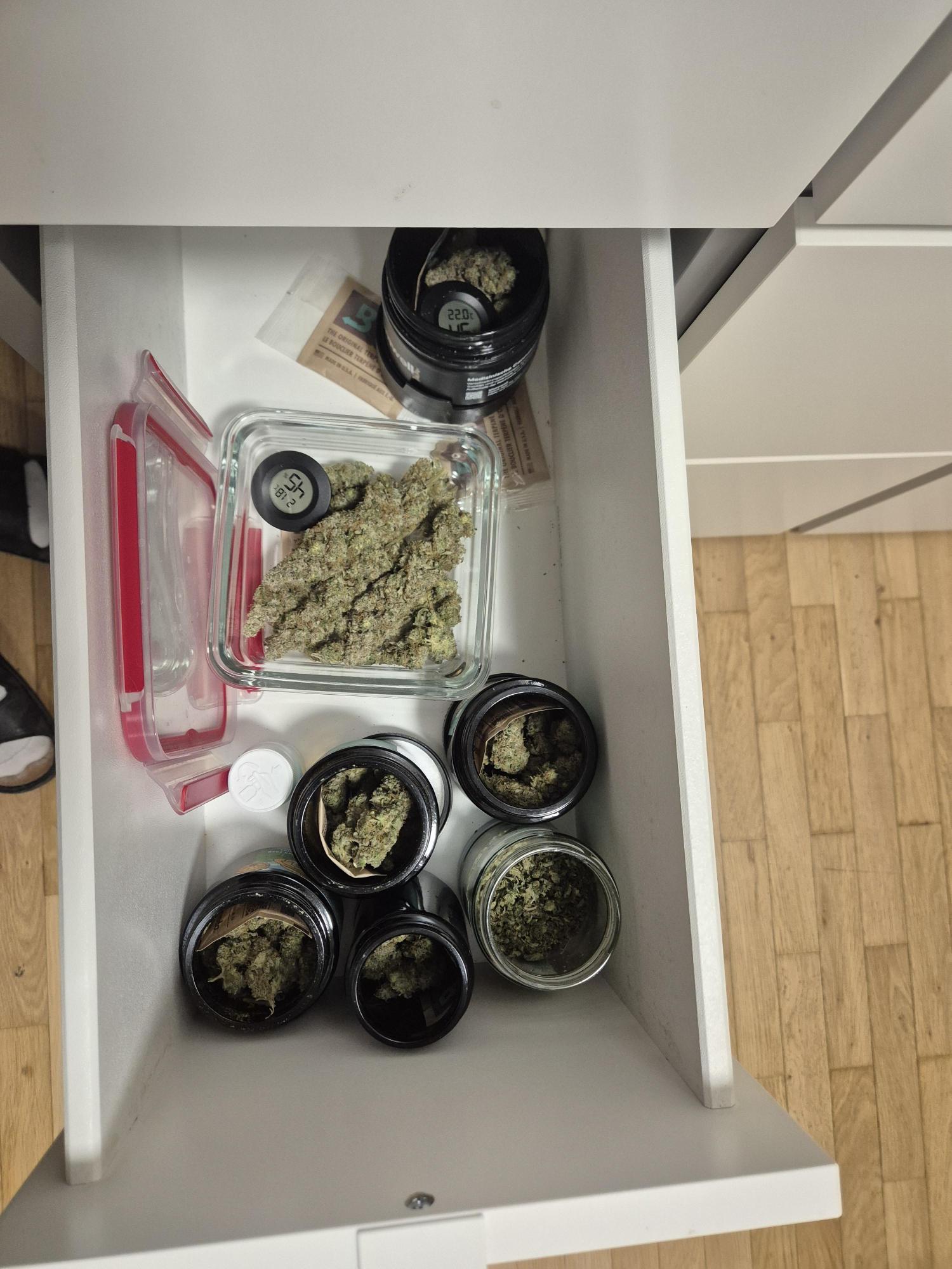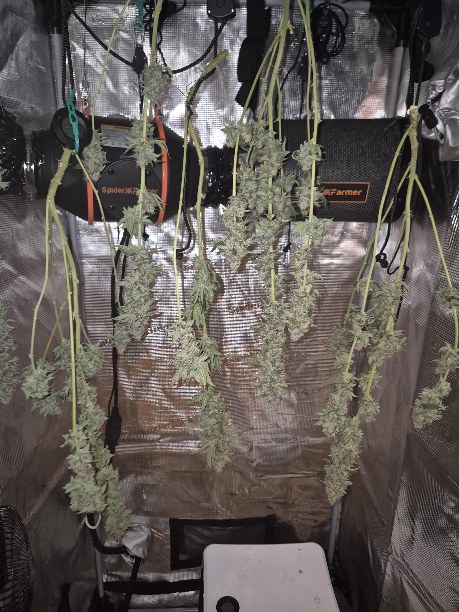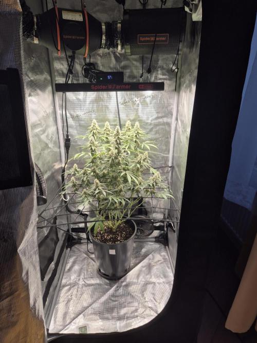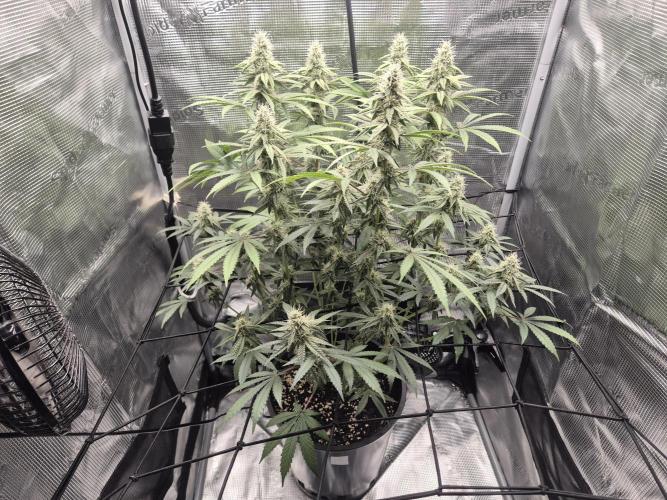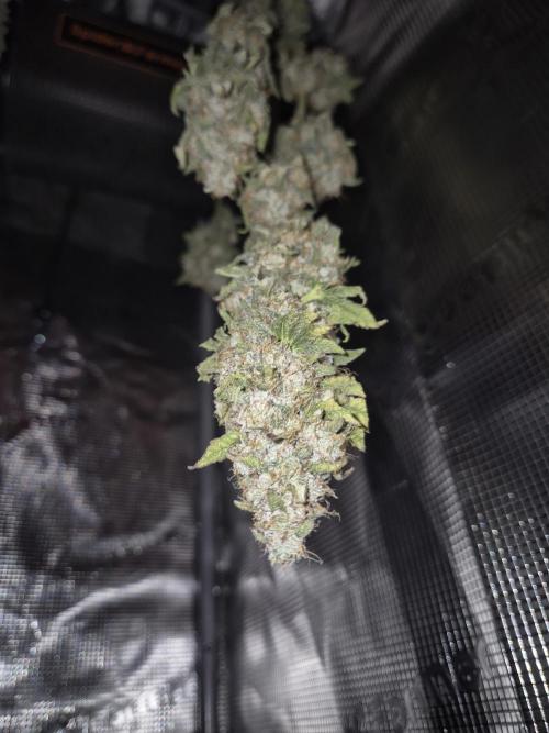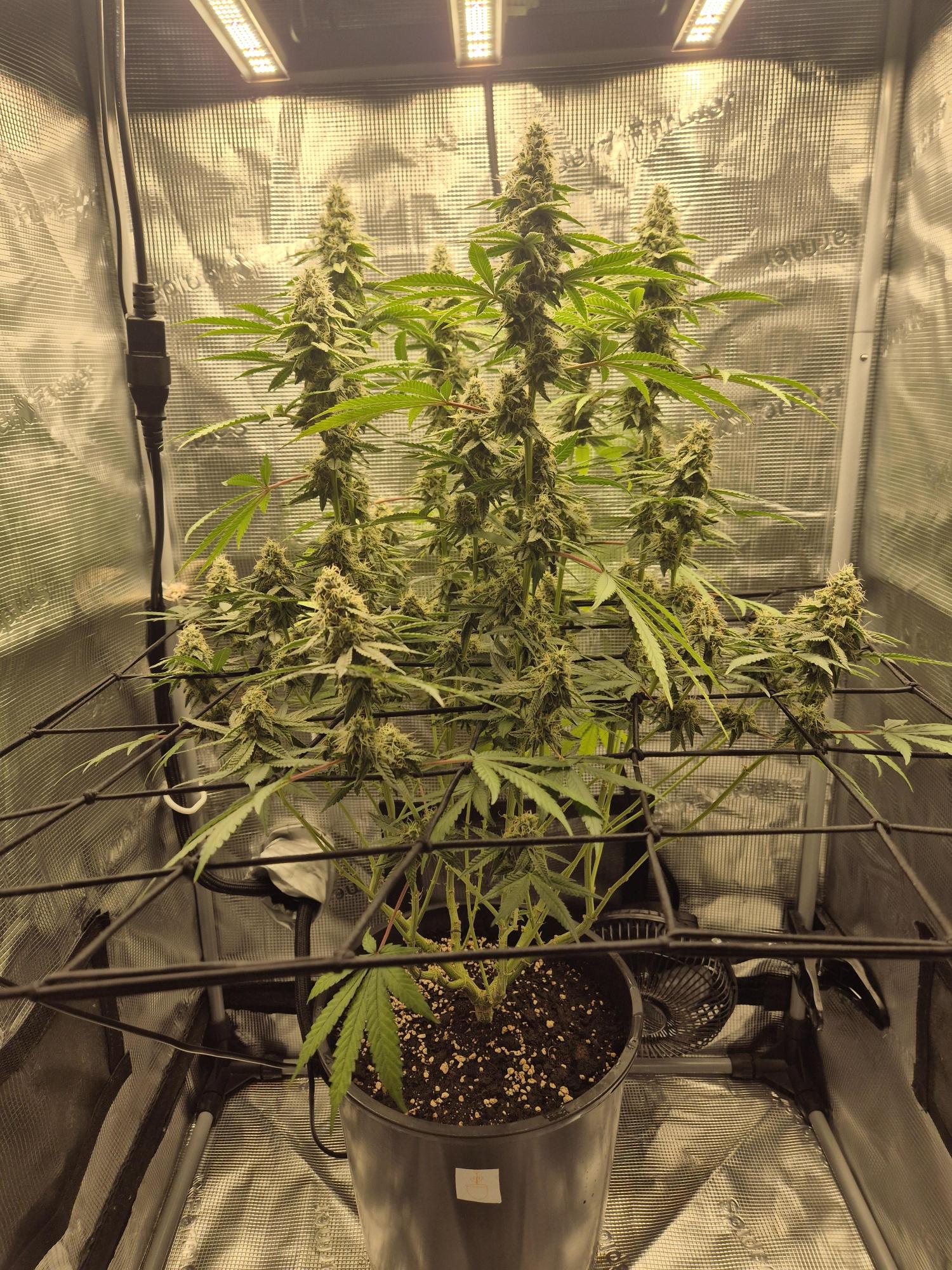 This strain is derived from two Gorilla's Glue#4, one in the form of seeds brought from the US, and another in the form of a clone that has already been growing for quite some time in Amsterdam. Between its ancestors we can find members of the Chem and the Sour families, which contributed to our God's Glue ability to reach an average THC level of 25%, with peaks of 30% on selected individuals. The aroma is very complex, starting from a base of soil and diesel, completed by notes of citrus. Even though it's a hybrid, the effect is like a very strong indica, but totally happy and social.