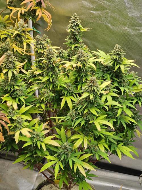 Alien Moonrocks is a strain that lives up to its name — dense, resin-packed buds that look like they’ve been dipped in stardust and cured on another planet. Growers consistently highlight its compact, bushy structure and the way it fills out quickly during flower, producing rock-hard nugs with a glimmering coat of trichomes. It’s an easy-to-manage cultivar, ideal for small spaces or discreet setups, yet still capable of pumping out impressive yields when given enough light and airflow. The aroma is a complex mix of sweet earth, creamy fuel, and exotic spice, with a terpene profile that intensifies throughout the cure. Users describe the high as deep and long-lasting — a strong cerebral rush followed by a dreamy, weightless body stone that makes stress and tension melt away. For extract lovers, the sticky resin production is a huge bonus, and visually, these buds have serious bag appeal. Whether you’re after top-shelf flavor, strong effects, or a standout addition to your grow tent, Alien Moonrocks hits the mark. It’s potent, beautiful, and reliably delivers that premium, boutique experience from seed to stash jar.
