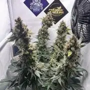 The plant develops a bushy structure and produces heavy resinous buds coated with fat layer of shiny crystals. It ideally suits for SOG, SCROG, LST and other training methods. A lot of trichomes cover whole plant and produce an amazing flowery smell.