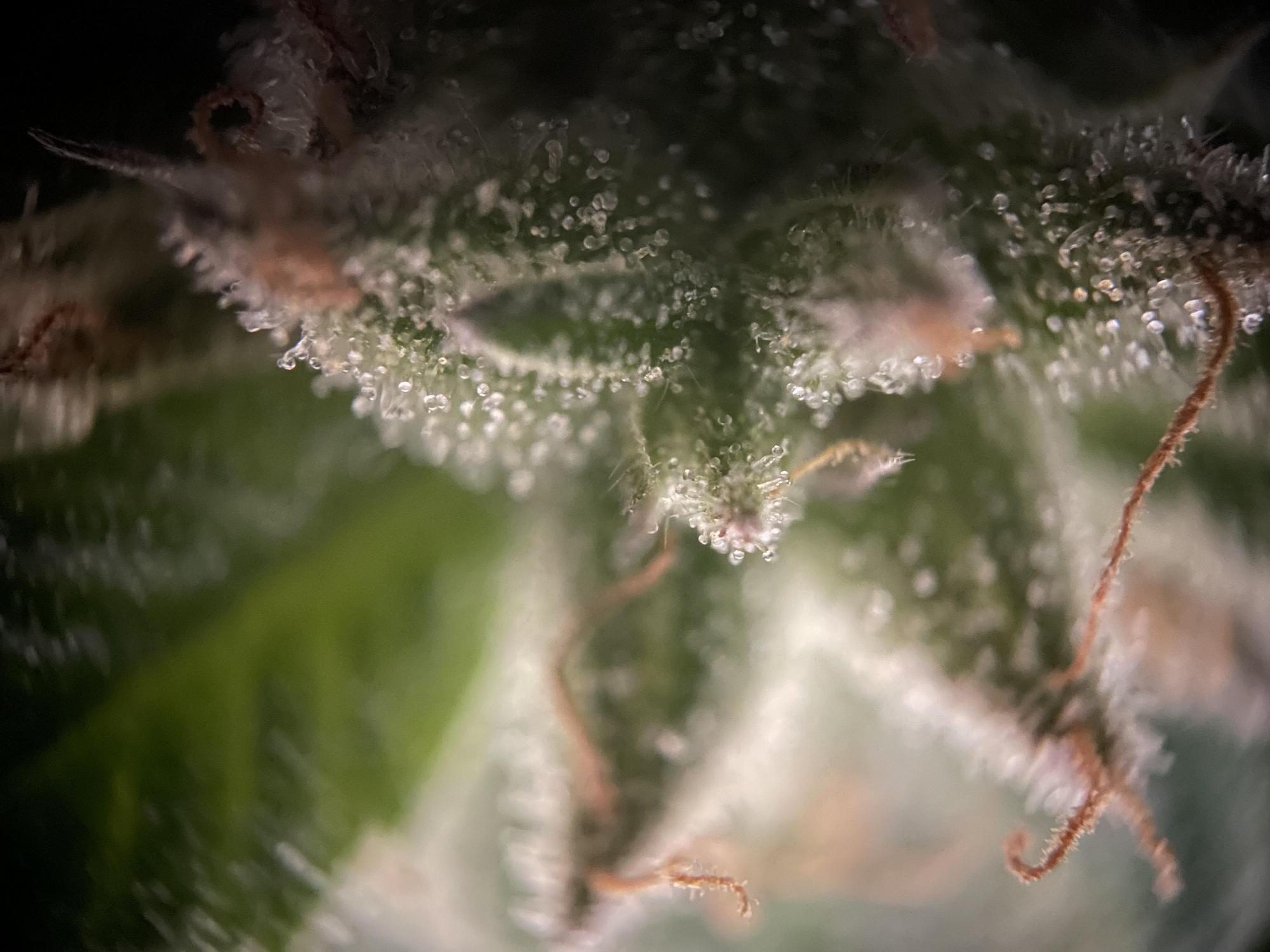The multiple calyxes of this plant produce thick flower clusters that quickly fill with rock hard big buds that are insanely rich in resin.