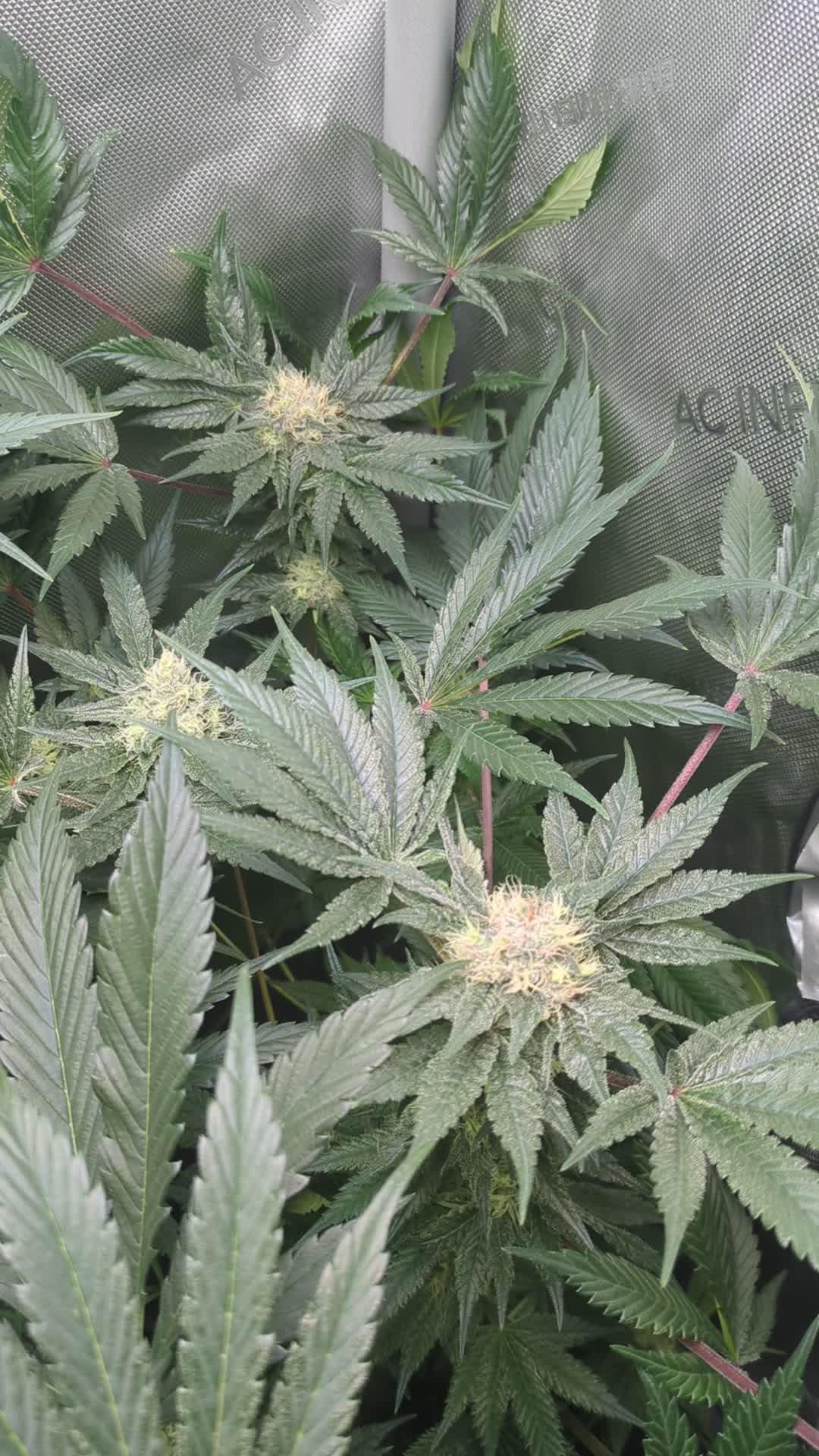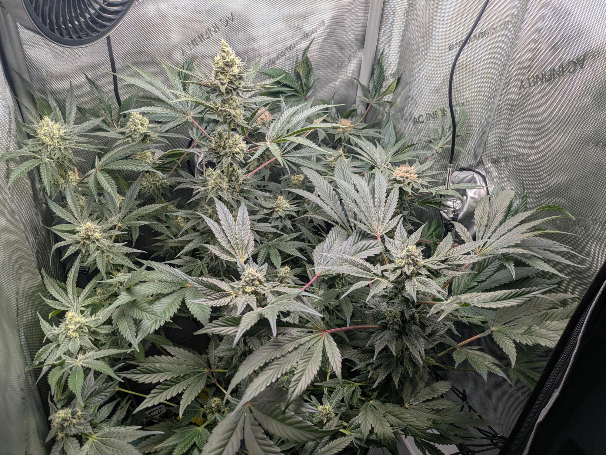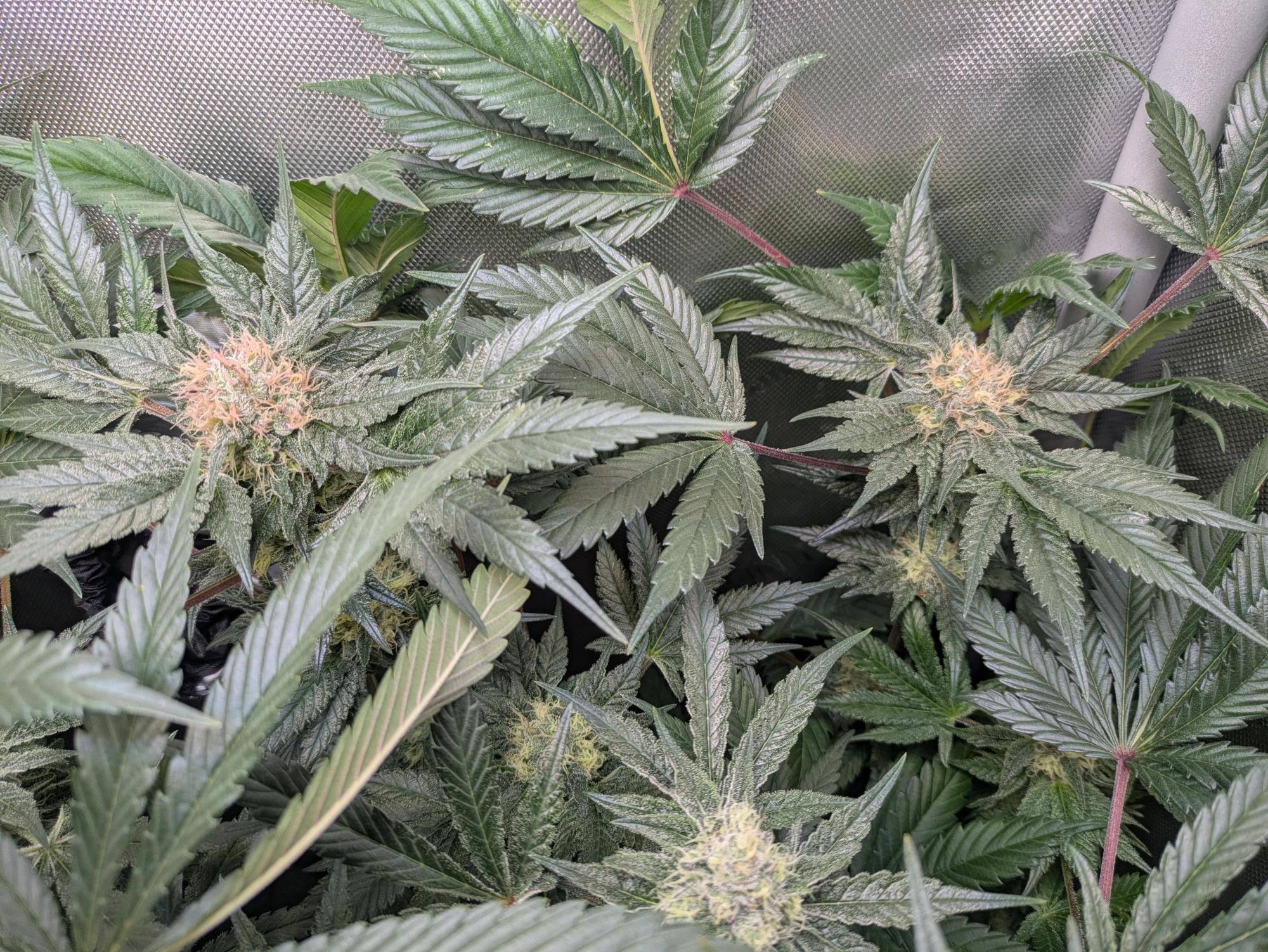 The flush of purpley red, particularly in the top buds, as harvest approaches, adds to the overall eye candy display.