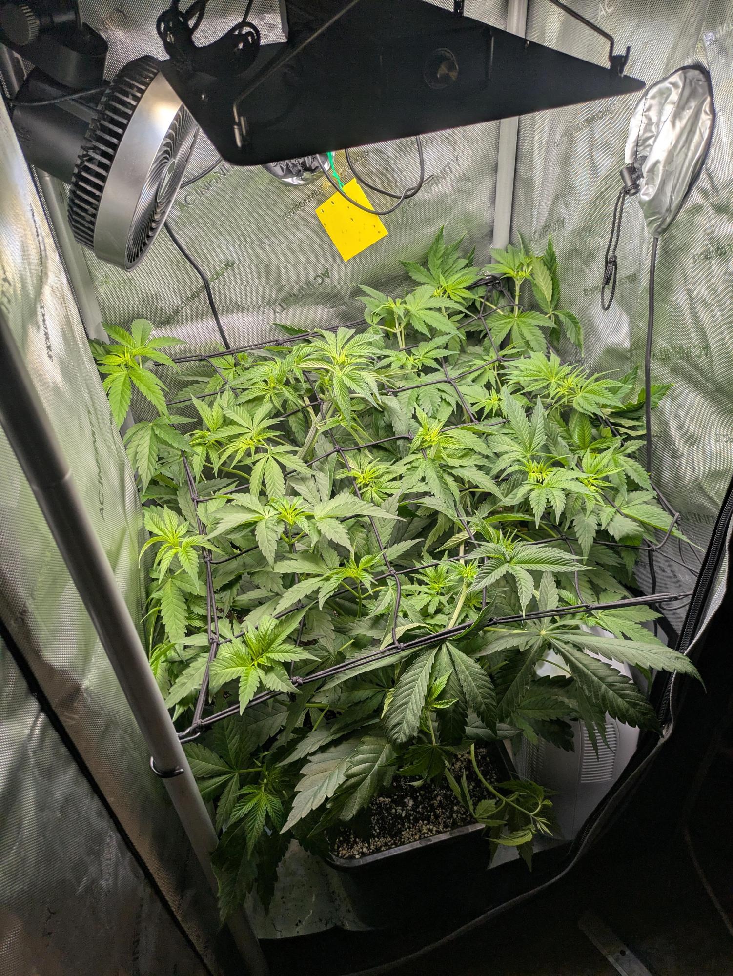 The smell in the grow room is like old school Skunk run through an amplifier, with wafts of sweet perfume and spice.