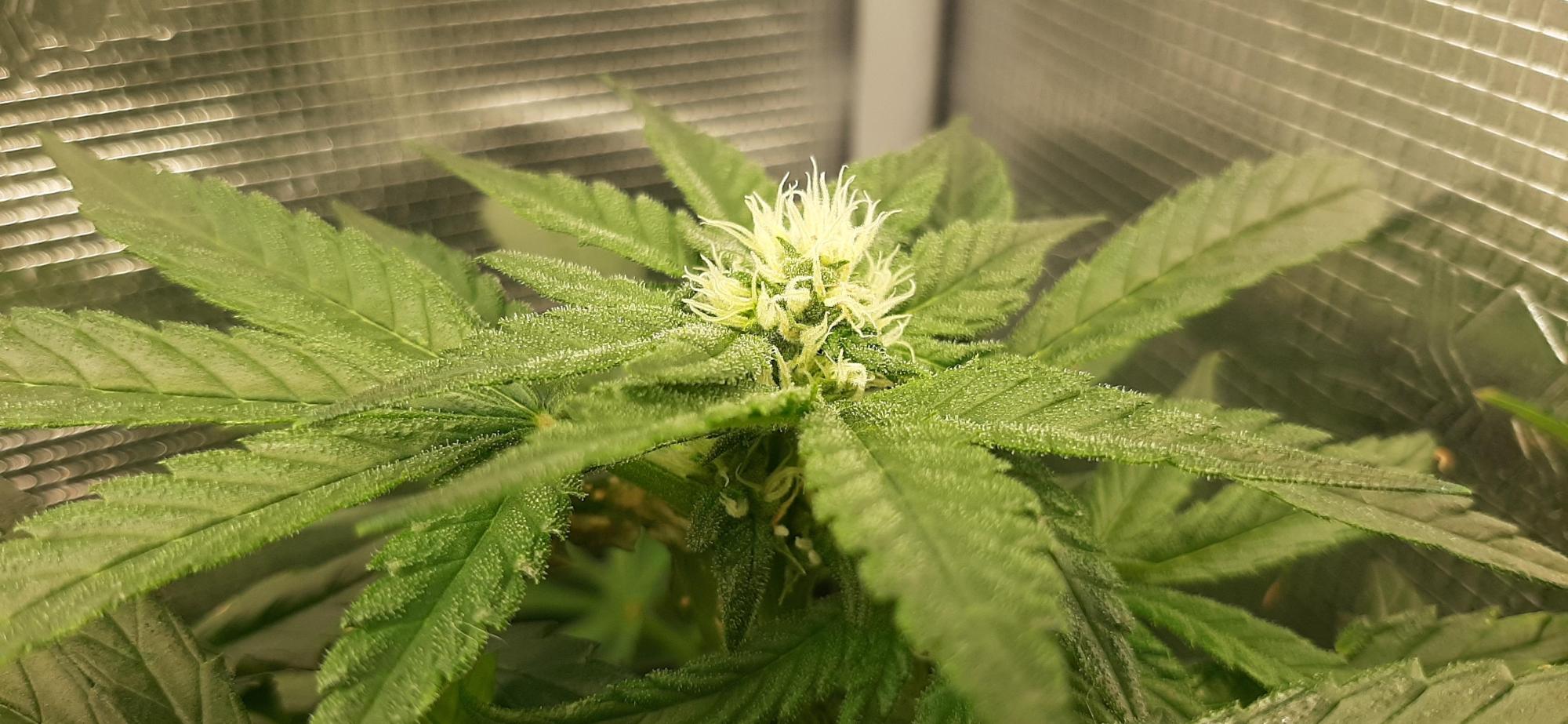 Structurally it is very similar to Girl Scout Cookies, with quite branching and medium/high distance between knots. The leaves are of a dark shade, medium width and the calyx/leaf ratio is very interesting. In flowering begins to produce resin before any other, to finish completely frosted, with a snowy appearance by the thick layer of trichomes that wrap the dense buds.