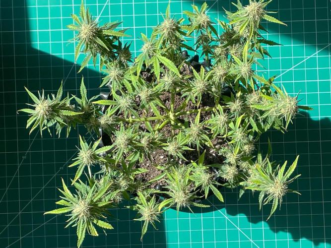 Chasing hybrid vigour? Then Gaia F1 needs to be in your genetics locker. Descending from inbred lines that combine New Breed Auto, Black Domina, and Sin Tra Bajo, Gaia F1 produces stable, resilient, and high-yielding plants with every harvest. Indoors or outside, she reaches 50–70 cm and produces XL yields just 70 days after germination. Loaded with THC, caryophyllene, myrcene, and terpinolene, Gaia F1 boasts delicious mint, citrus, and pineapple aromas. Meanwhile, her effects are enlightening, energising, and uplifting—perfect for forest walks, sunbathing, or simply feeling connected to the world around you.