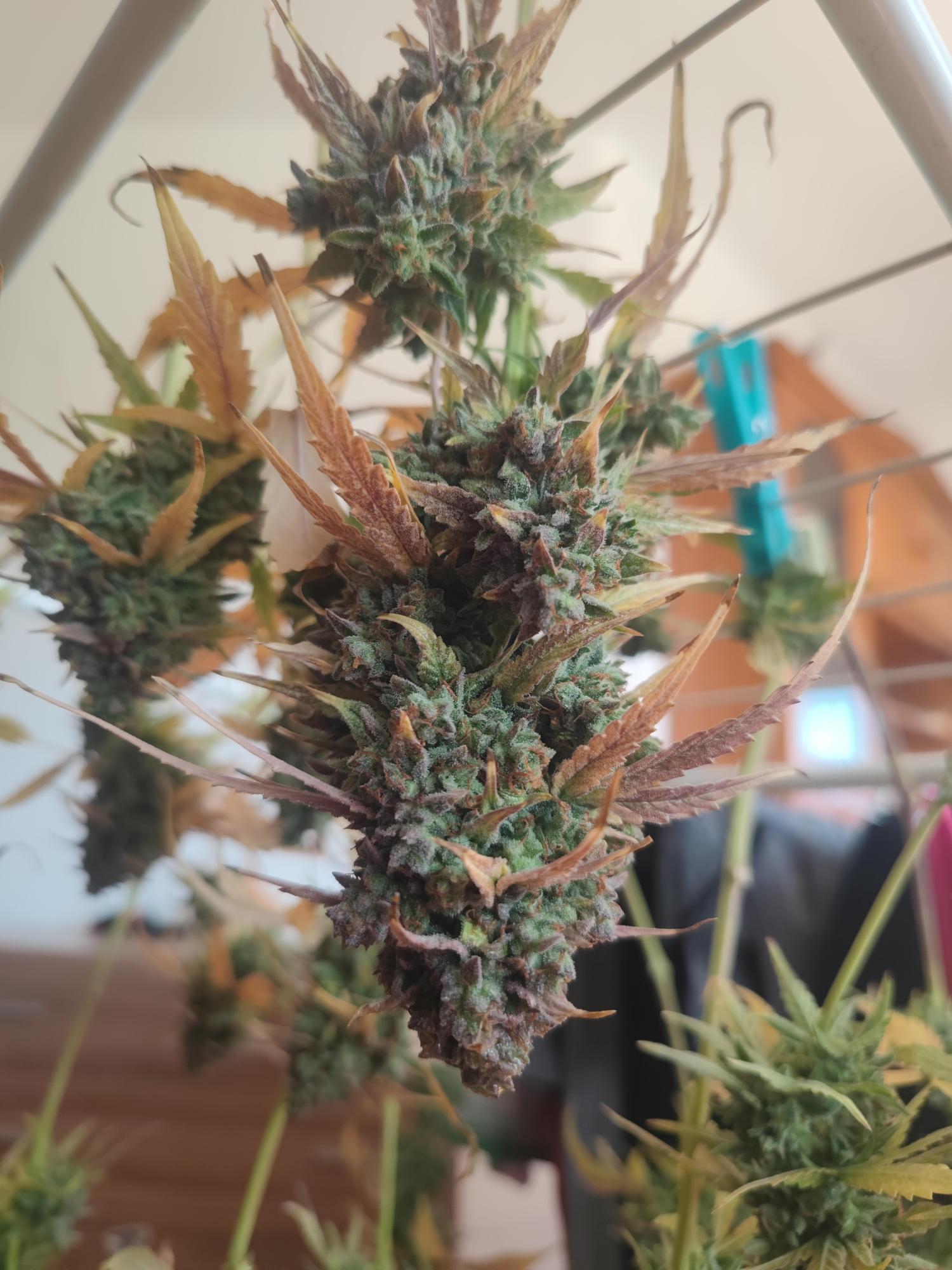 Hyperion F1 offers a lush aroma dominated by fresh pine and herbal notes, complemented by earthy undertones and a delightful peppery kick. While all our F1 hybrids excel in cannabinoid and terpene production, Hyperion distinguishes itself in this regard. Its long, frosty flowers yield a resin rich in cannabinoids, primarily THC, and a blend of terpenes including myrcene, ocimene, farnesene, terpinolene, caryophyllene, and humulene. This results in a potent aroma and well-balanced effects, combining physical relaxation (mainly due to myrcene and farnesene) with the euphoria, laughter, and motivating qualities of other terpenes. Like its namesake, the sun god, Hyperion F1 delivers an enlightening high suitable for any time of day.