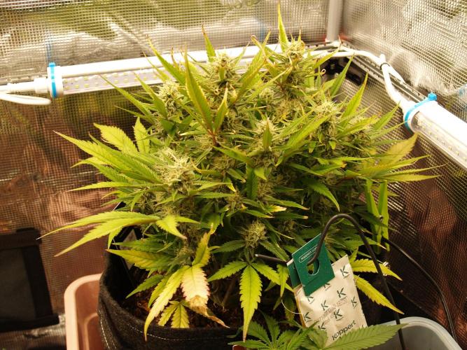 Royal AK Automatic is an autoflowering version of the legendary AK47, renowned for its potent effects and high yields. Its genetics are 35% sativa, 40% indica, and 25% ruderalis. By crossing the original AK47 with Ruderalis, this strain inherits autoflowering traits while maintaining excellent resin production. It is easy to grow both indoors and outdoors, thriving in a variety of conditions. The smoke offers a pleasant musky, sweet aroma with hints of incense, complemented by a sweet and spicy taste. The well-balanced effects deliver a happy, active cerebral high along with a relaxing body stone.