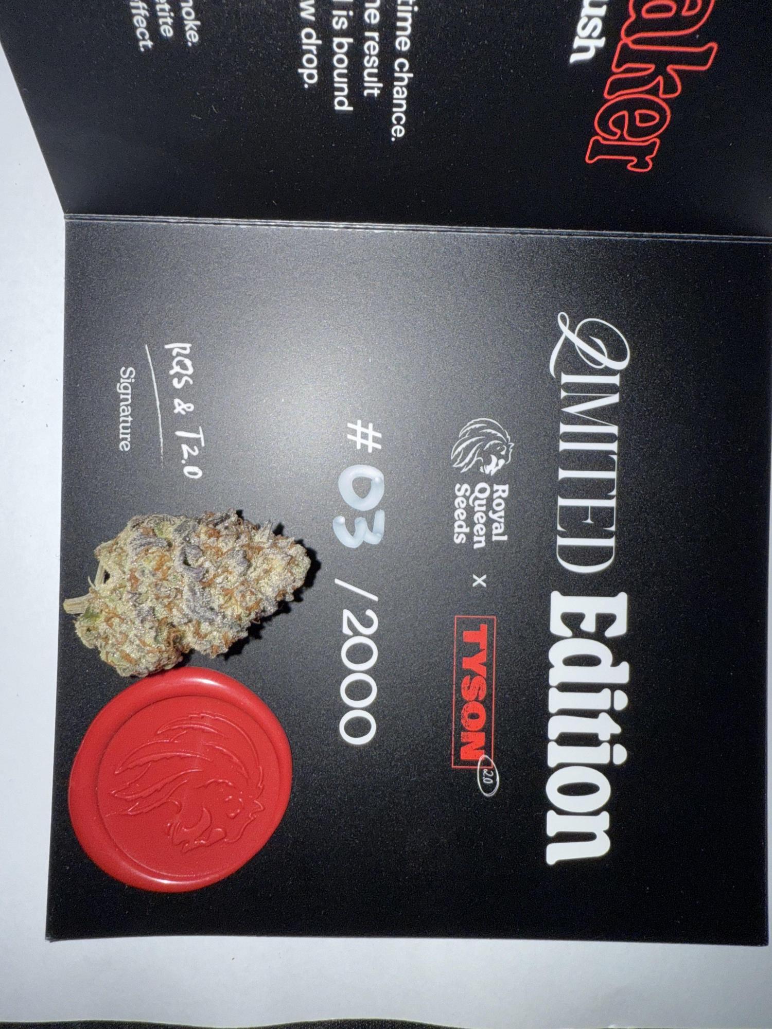 Introducing The Jawbreaker: a limited-edition collaboration between RQS and Mike Tyson. Only 2,000 units available, this exclusive strain combines Gelato #41 and Kosher Kush with 27% THC and notes of pine and earth. Packaged in a striking black and red box, it’s the ultimate collector’s item, embodying Tyson's power and intensity.