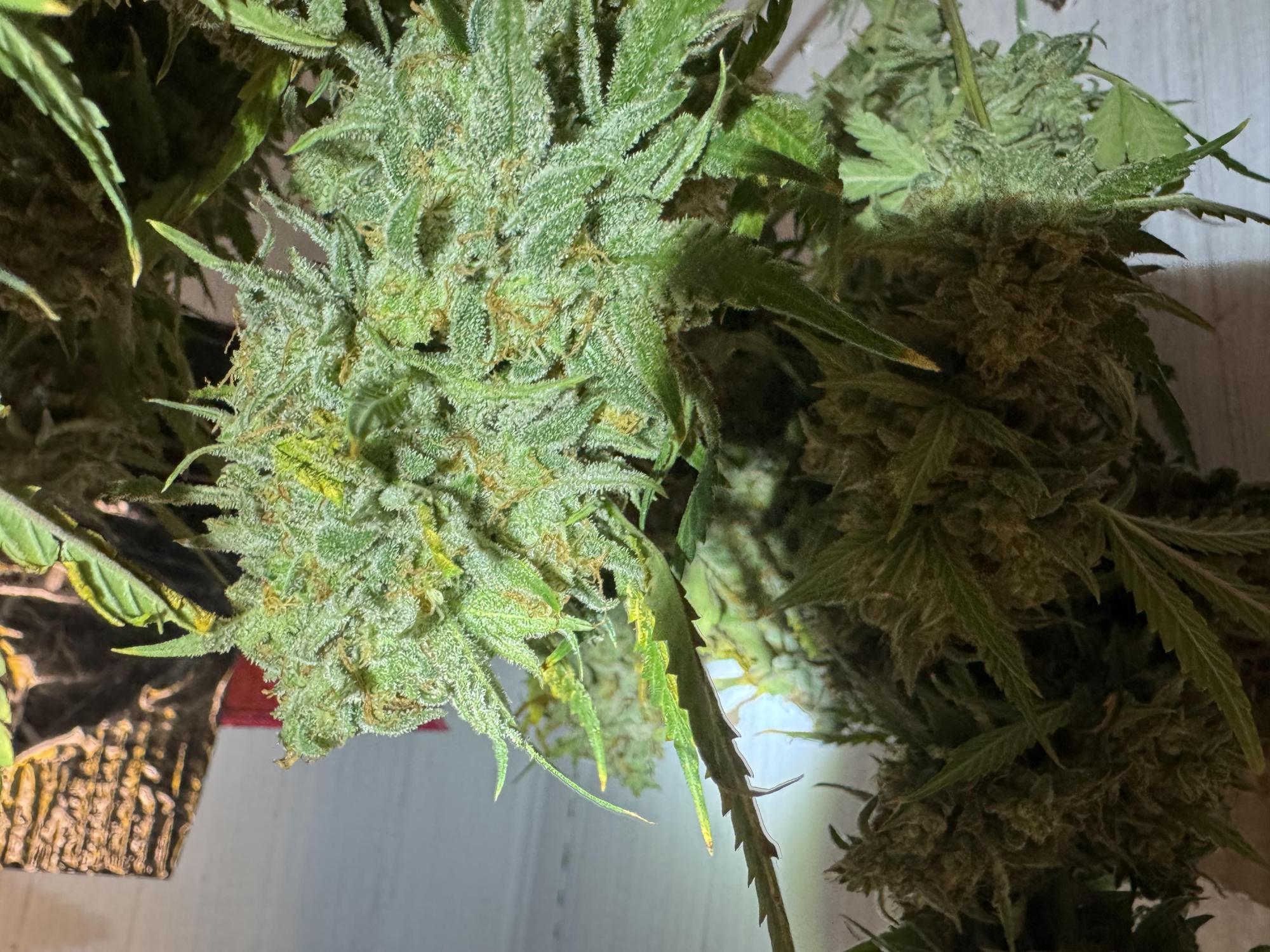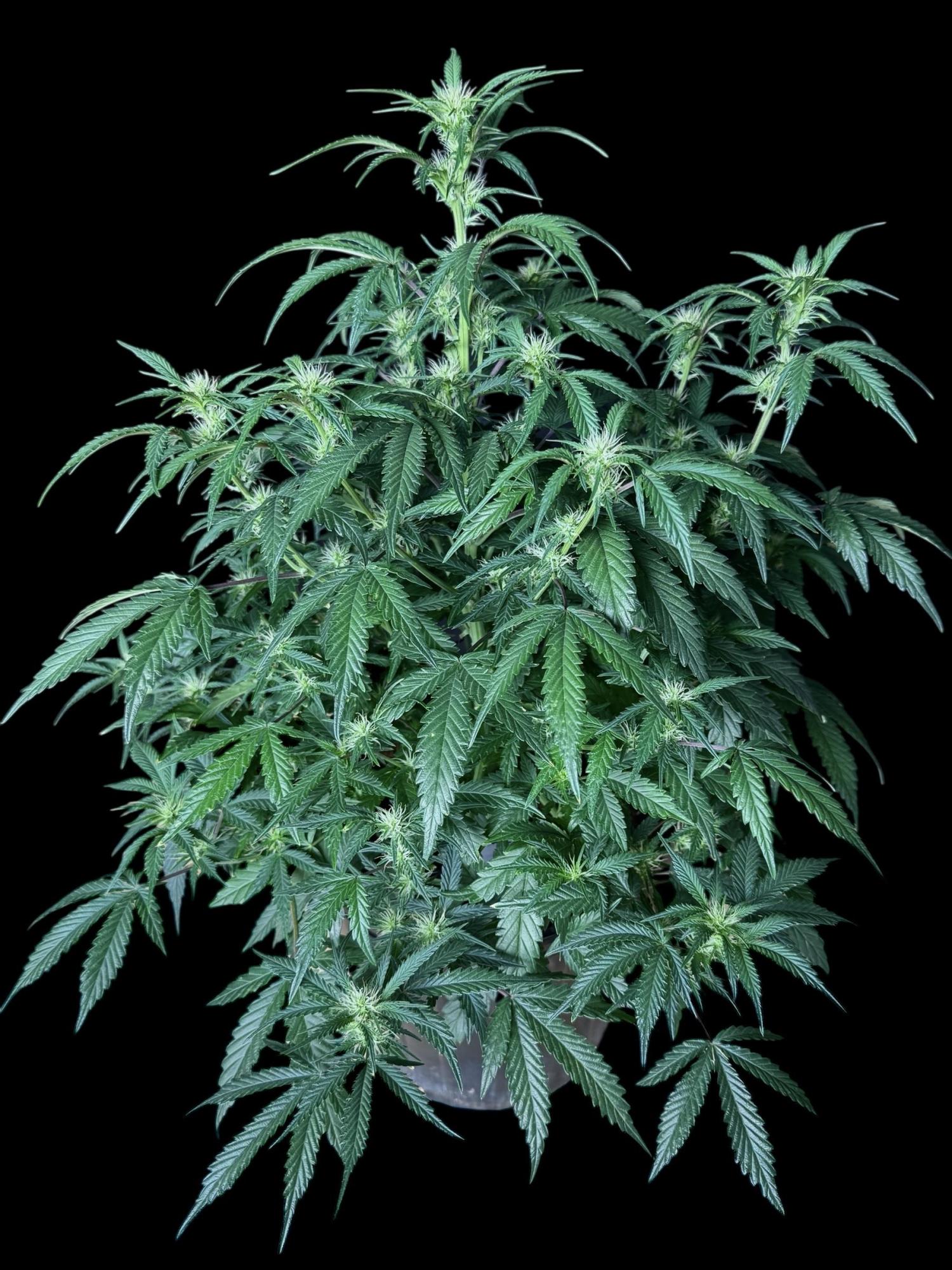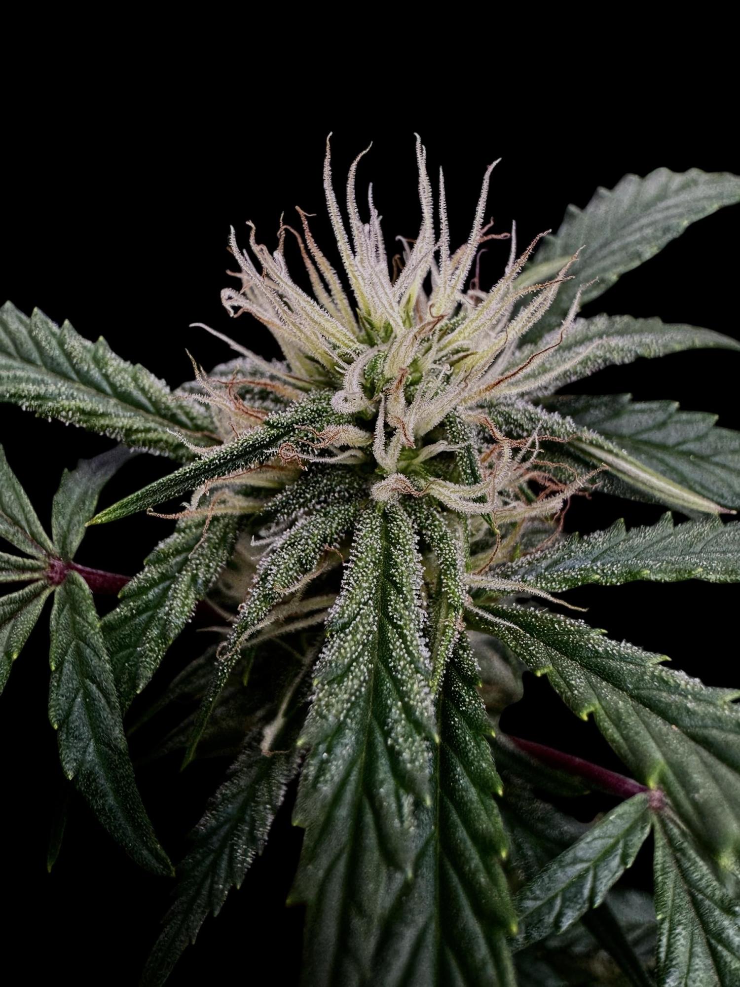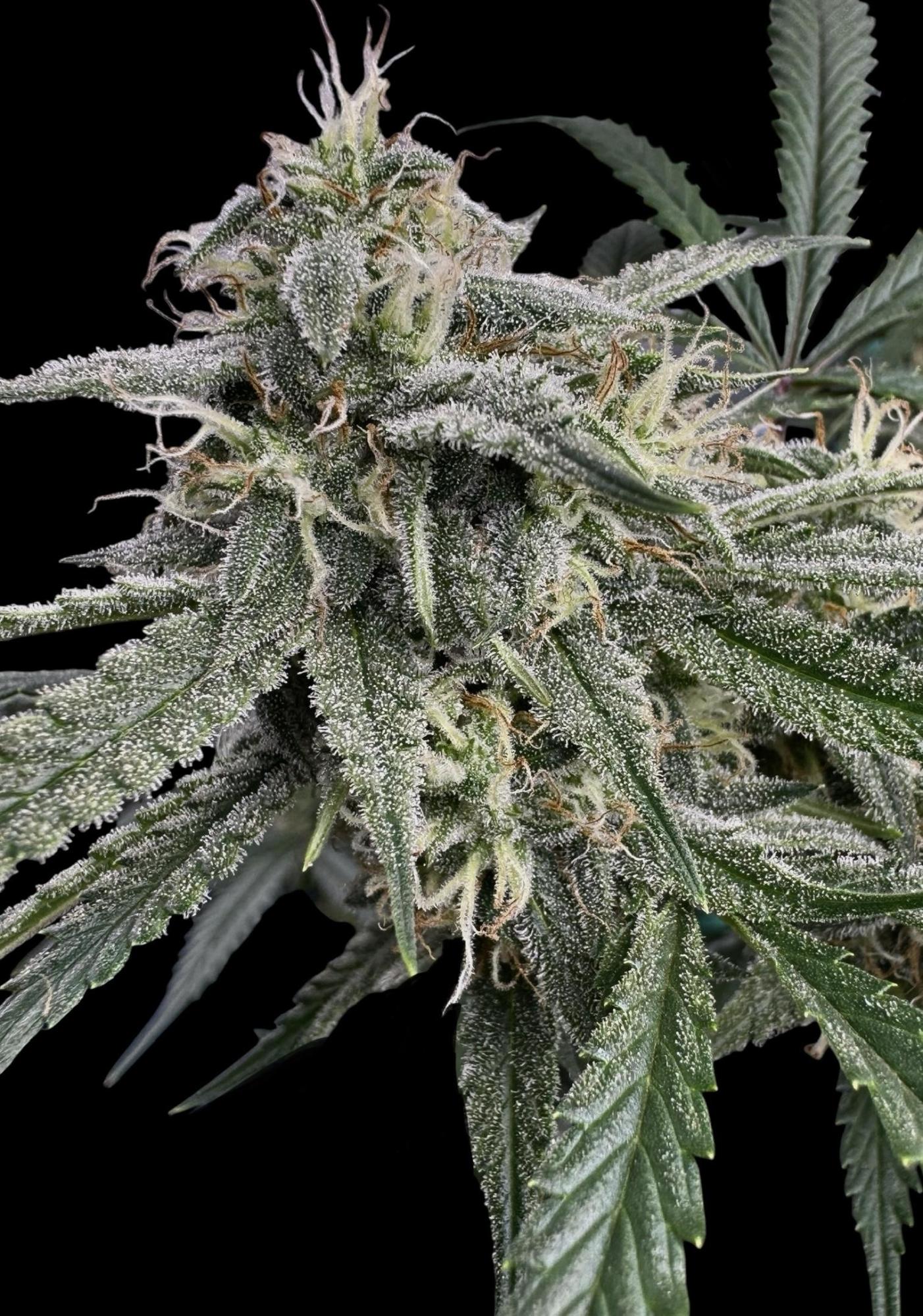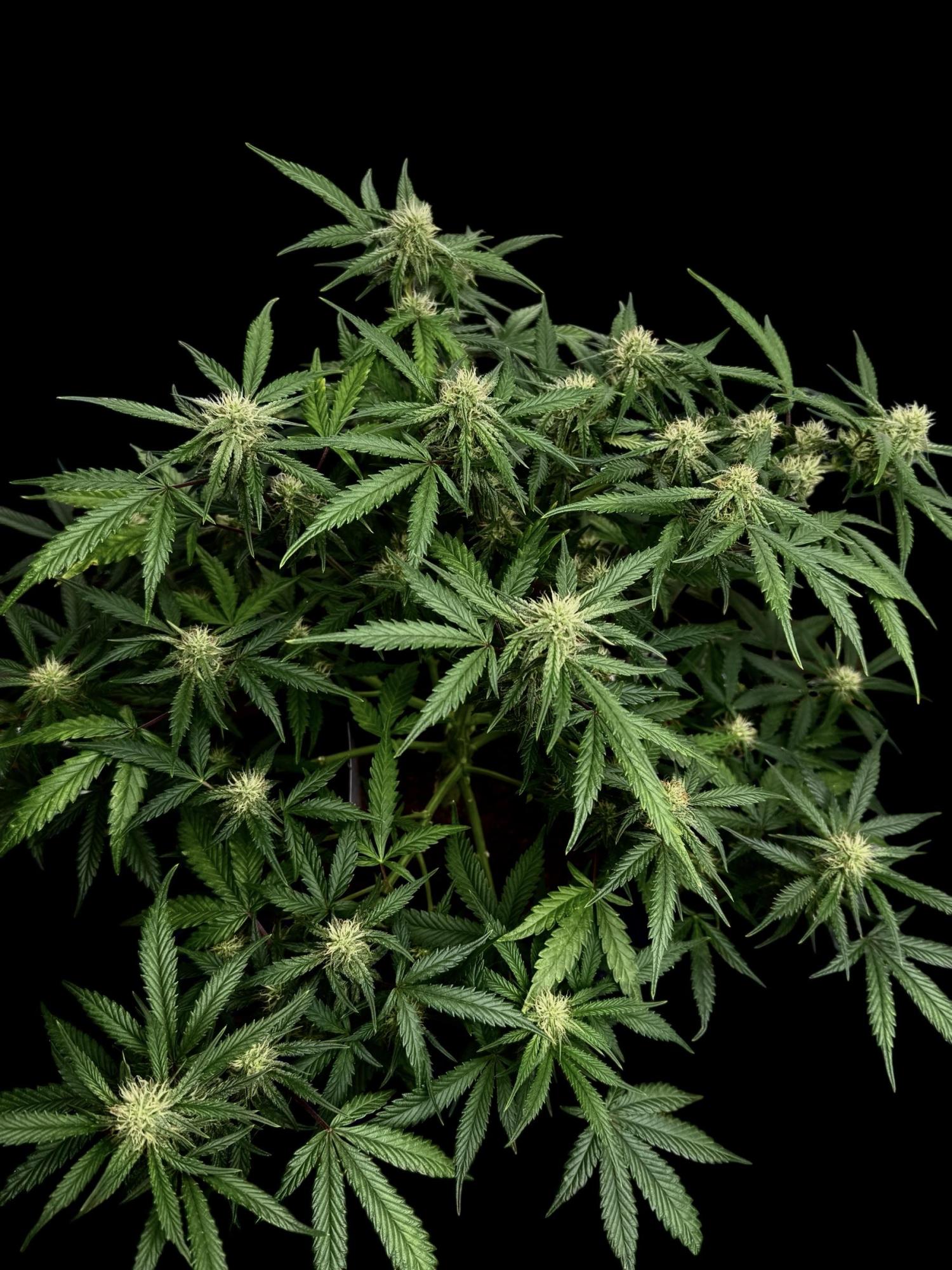 Thriving indoors and outdoors alike, Cookie Apple OG Auto boasts a uniform structure with well-balanced lateral branching and consistent internodal spacing. Exhibiting robust vigor and excellent resistance to mold, plants can reach heights of 130cm outdoors in open ground, thriving in a wide range of climate conditions, including dry, hot, warm, and temperate environments. Completing its entire life cycle within 75 days from seed to harvest, this strain yields good results for autoflowers, with mature buds showcasing an appealing light green hue with purple accents. Manicuring the dried and cured buds is a straightforward task, resulting in buds with superb bag appeal.