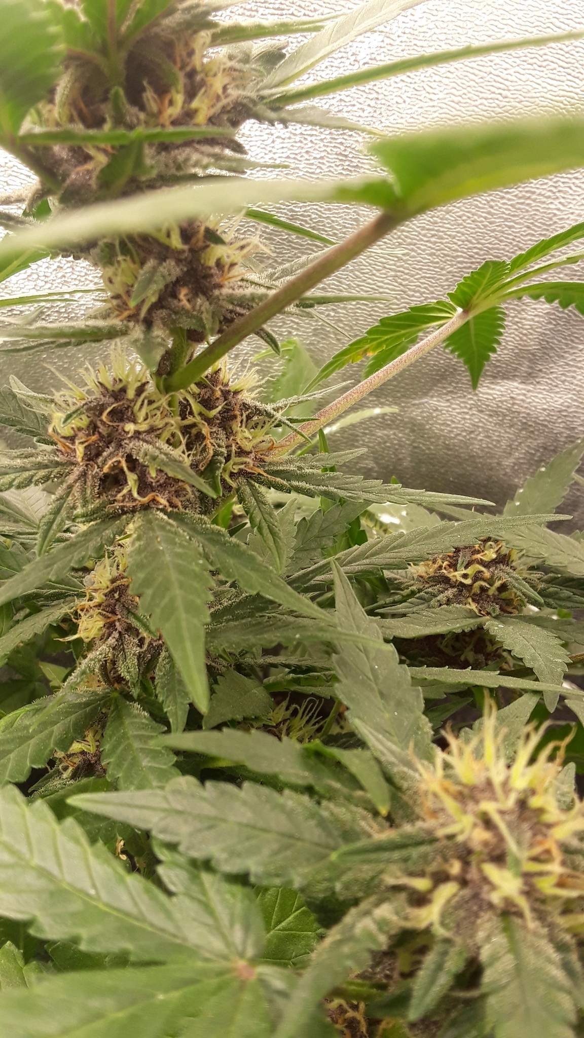The plant produces the purple clours and looks like classic Skunk. It has lots of side brunches, big flowers and a thick central cola. The buds are completely covered in fragrant resin.