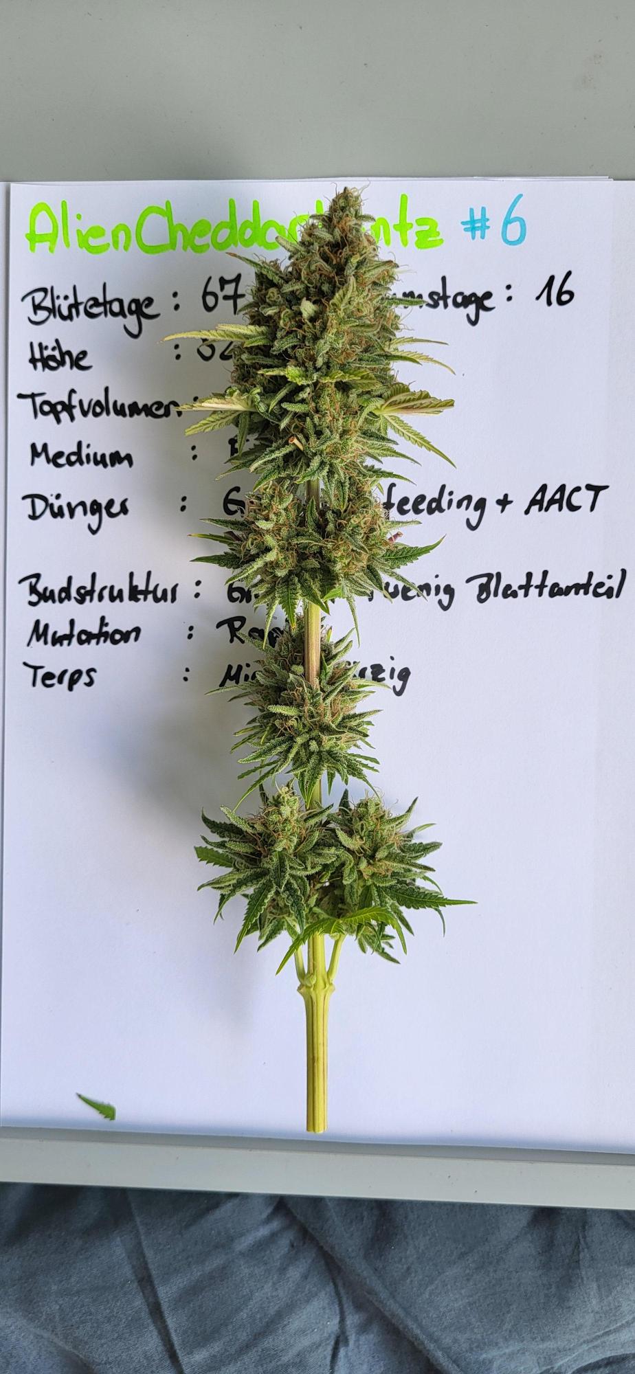 True to its lineage, Alien Cheddar Mintz grows stocky and bushy with minimal stretch during flowering. Its foliage showcases a genetic carnival: 40% Croco/Duck leaves, 40% Classic, 10% Fern, and 10% Raptor—often blending into intermediate forms. Buds develop fat, frosted, and medium-dense, radiating lime-green with minimal purple hues in some Phenos under a dense resin blankets. They are moderate to heavy feeders, they thrive indoors/outdoors with an 9 week flowering phase. Yields are robust for their size, and resin production excels for extracts.