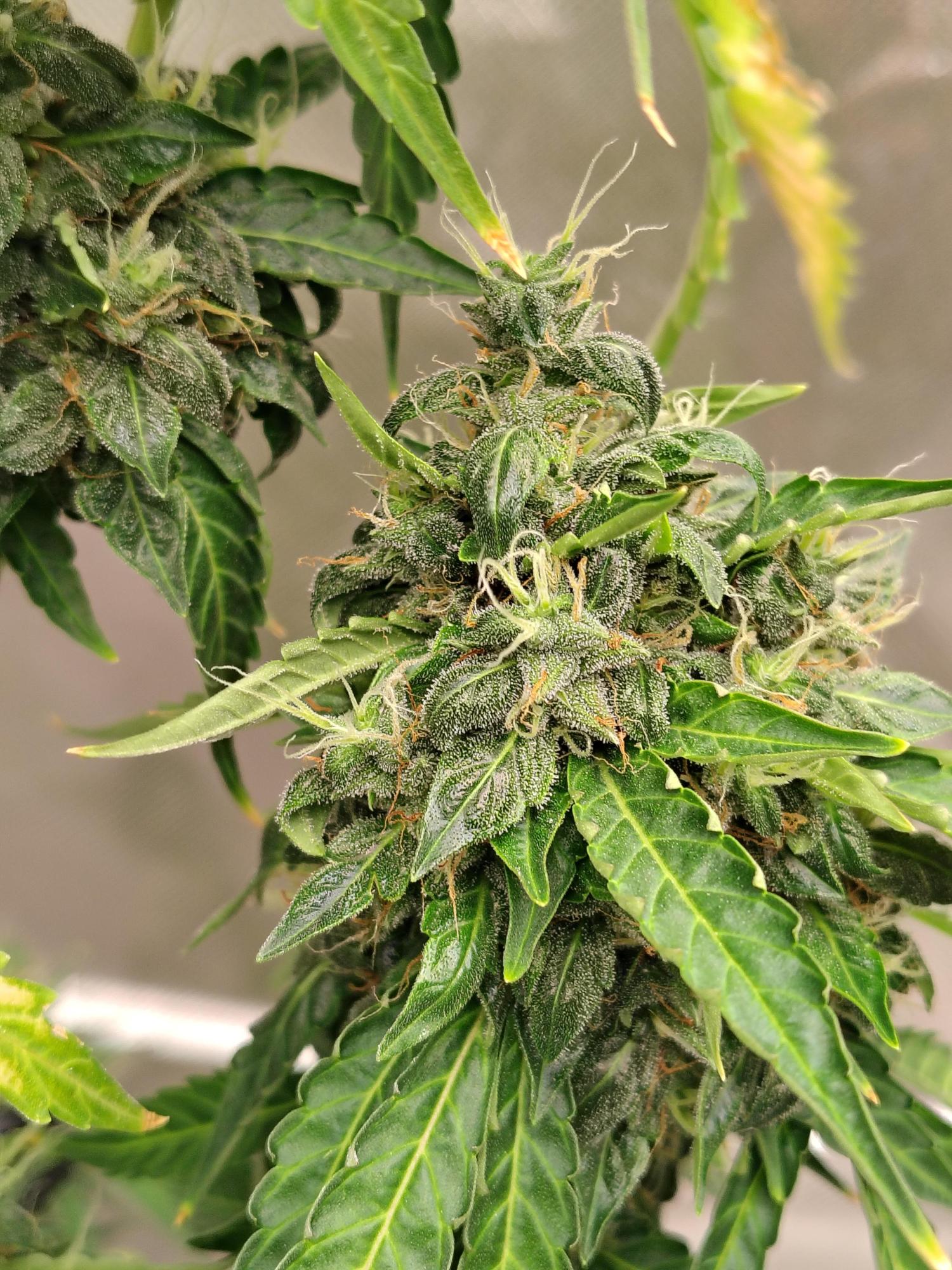 Apple Fritter Automatic is an autoflowering version of Zamnesia's Apple Fritter. This sweet and spicy strain quickly grows into healthy, vigorous seedlings with a solid indica structure, broad foliage, and a strong central stem and side branches. By the end of her 3-week veg phase, Apple Fritter Automatic stands at about 100cm tall. During bloom, she develops big, dense buds with a milky coating of trichomes containing up to 23% THC. Around 70 days after germination, Apple Fritter Auto will be ready to harvest; expect yields of up to 450g/m² indoors or 150g/plant outdoors.
