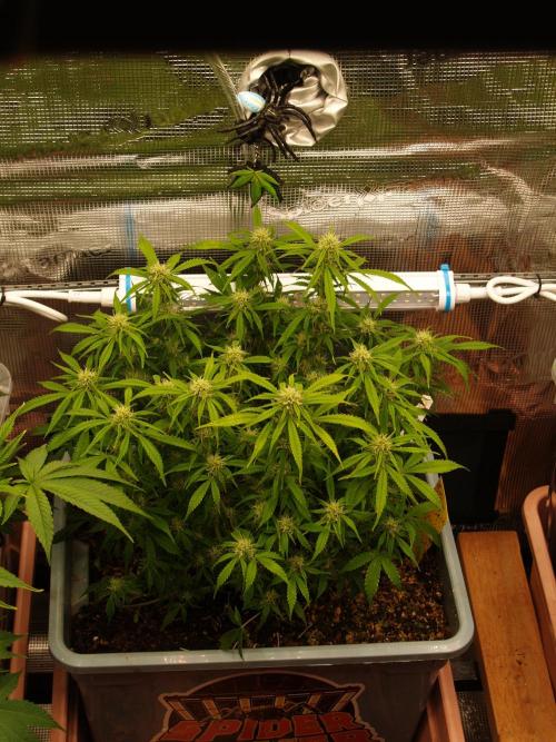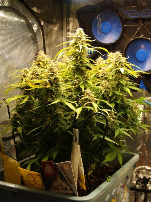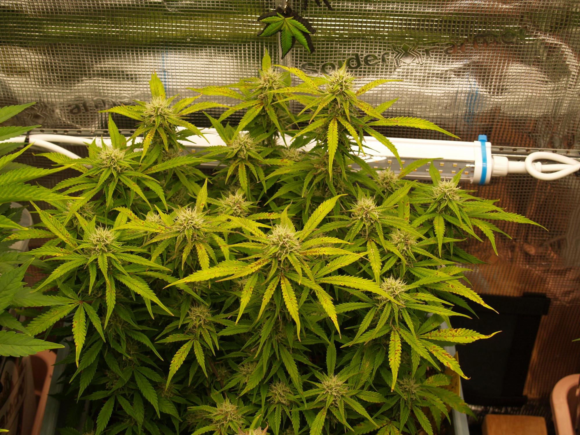 The cultivar produces compact, robust plants suited to constrained spaces. Typical heights are approximately 100 cm indoors and up to 130 cm outdoors. Plants exhibit a stout structure with dense, chunky flowers and substantial trichome development.