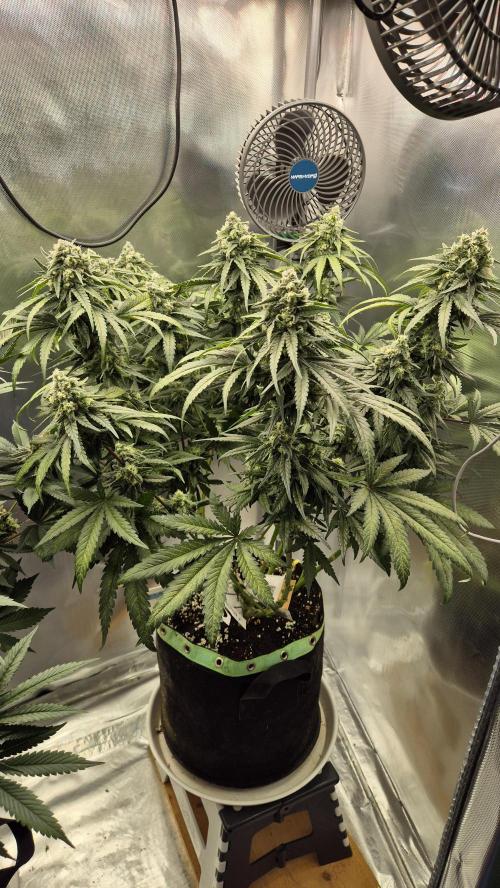 A descendant of Monster Bud Kush and White Widow, Karen Kush is 60% indica dominant and a pleasure to cultivate. If you're growing in a small tent or room, Karen Kush can be kept at moderate heights of 3ft while still producing heavy yields. Outdoors, Karen Kush can stretch significantly and deliver an even more impressive harvest. Once in bloom, expect indoor plants to be harvest-ready after 8–9 weeks, producing yields of up to 19.5oz/yd². Outside, Karen Kush plants are typically ready to harvest by late September and can produce up to 17.5oz each.