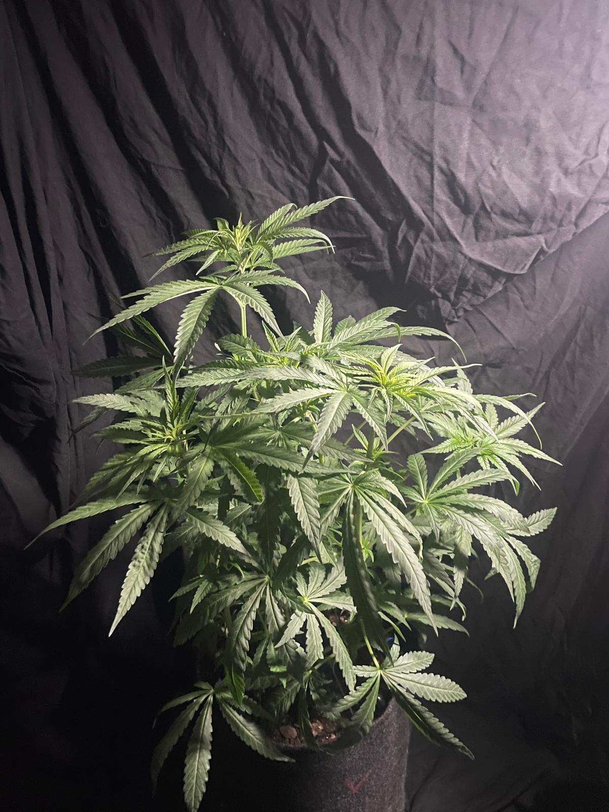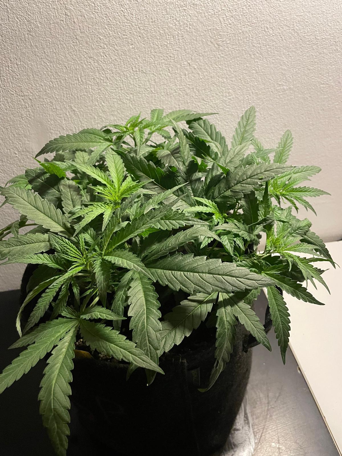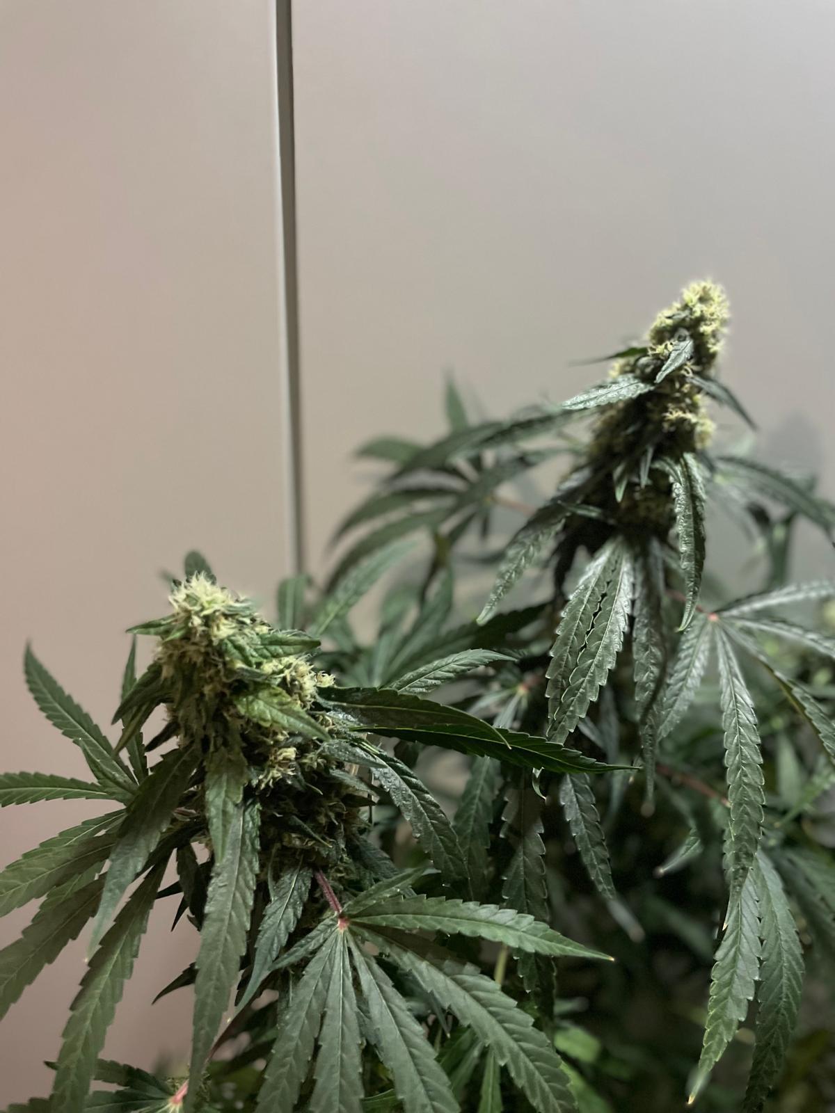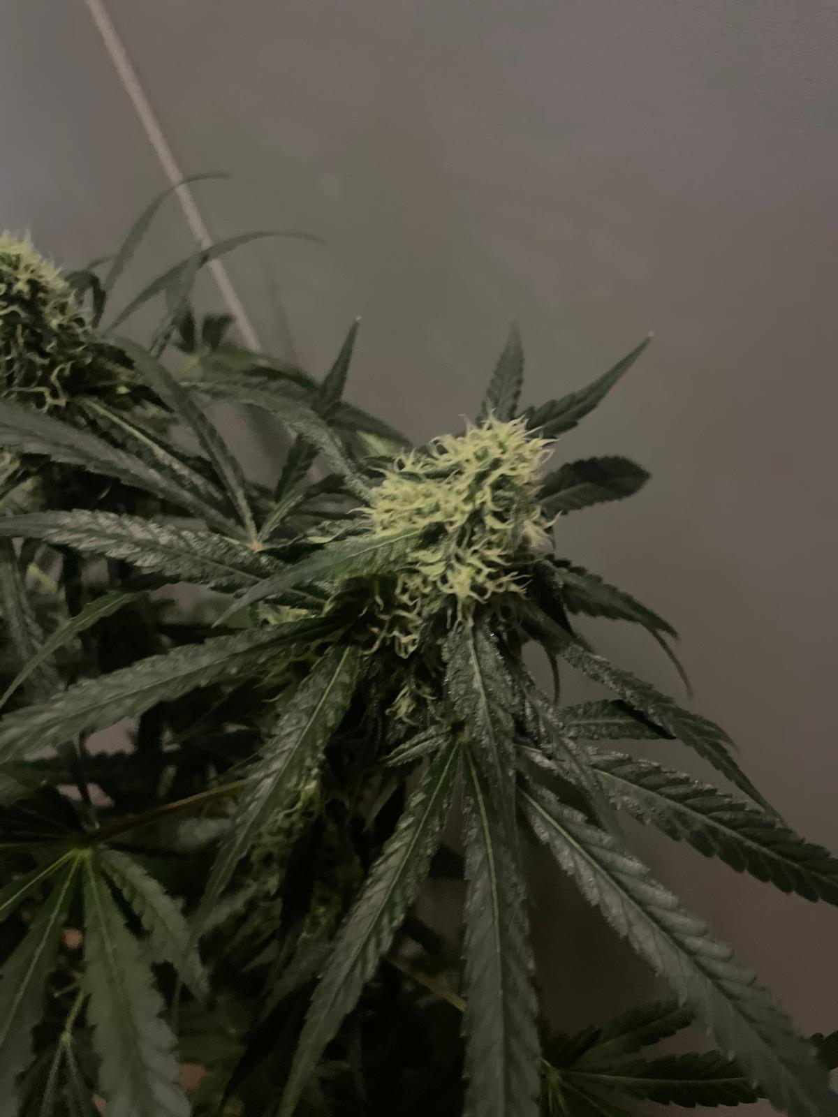 Plants develop a robust, bushy structure with dense, resinous buds. Indoor specimens typically reach about 120 cm and complete flowering in approximately 7–8 weeks. Outdoor plants may attain roughly 150 cm and commonly mature by October in temperate climates.