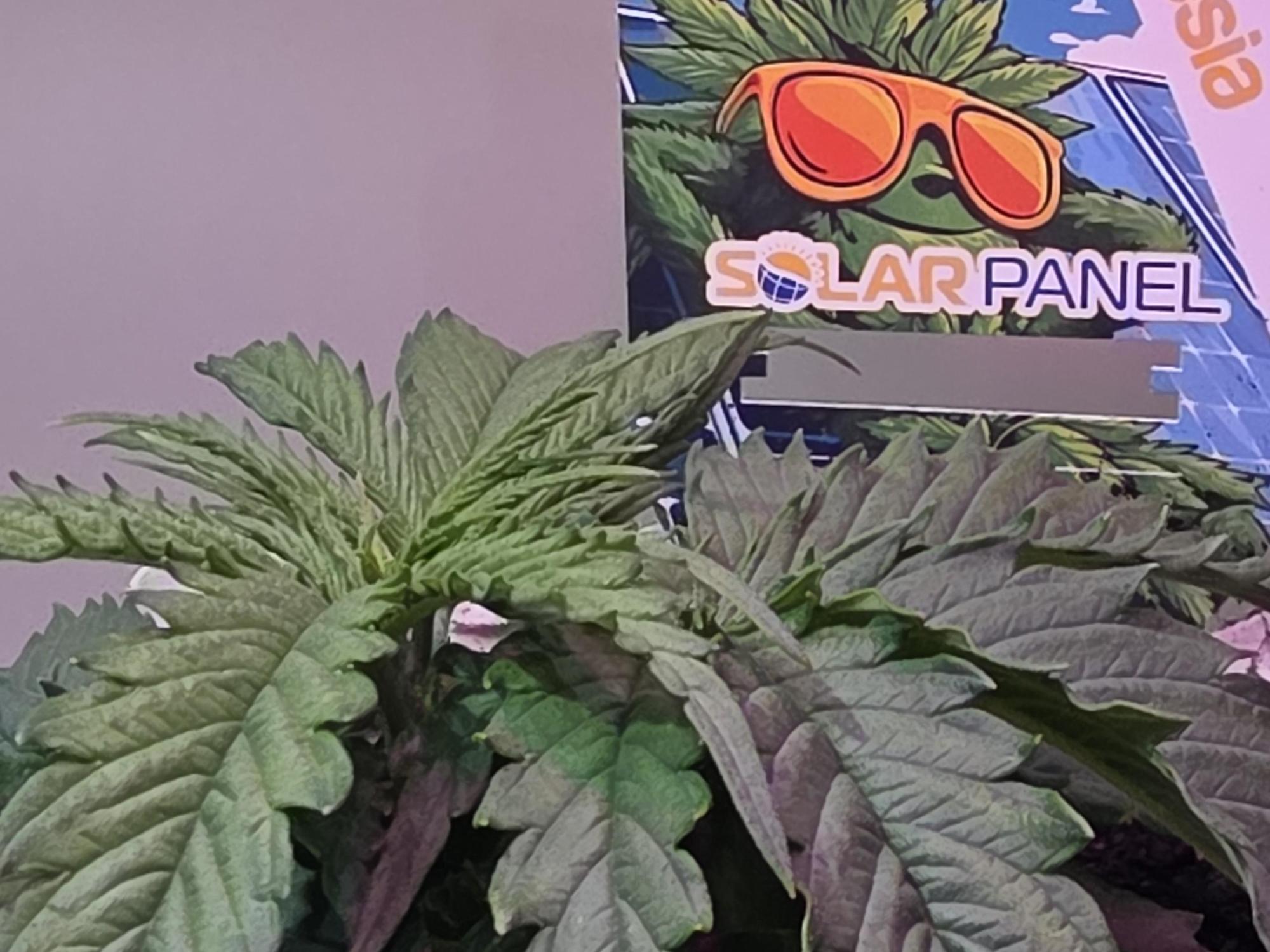 Solar Panel is a feminized photoperiod hybrid resulting from a cross between Power Plant and White Widow, with a genetic composition of approximately 60% sativa and 40% indica. Reported potency averages near 23% THC. The cultivar is noted for pronounced resin production and a citrus‑forward terpene profile.