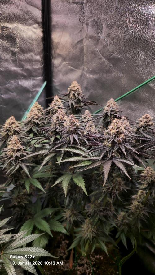 For a strain that can be enjoyed no matter the occasion, it has to be Wedding Cake. This feminized indica-dominant strain serves up mouth-watering flavours combined with high-powered effects worthy of a celebration. Formulated by the team at Zamnesia Seeds, this strain is the result of combining Triangle Kush and Animal Mints. Regardless of prior experience, Wedding Cake offers an easygoing grow. She's the perfect stepping stone for those who have dabbled with autoflowers and are looking to move into the world of photoperiod strains. Still, she is a robust and receptive plant that is equally comfortable indoors and out. A medium-sized specimen, she won't stretch out too much, but will display some dazzling colours and plenty of frosty resin. Taking around 65 days to flower, you can expect to see returns in the region of 450–500g/m² indoors. Outside, growers will see hefty yields of 400–450g/plant. A hugely impressive performance from an easy-to-grow plant. The first thing you'll notice upon opening your stash jar is an impressive aroma consisting of some sumptuous sweet tones accented with wood and light notes of spice and blueberries. It's no happy accident she's called Wedding Cake; her flavours are very similar to her sweet aroma, making for a sweet treat to be enjoyed at any time of day. Wedding Cake has a fairly high THC content of around 25%. She's a typical indica powerhouse, providing a strong euphoric rise that settles into deep relaxation—no couch-locking properties, just good vibes that lend themselves to being smoked or vaped. The choice is yours!