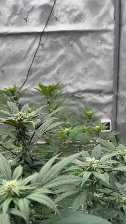 A - She is stacking well, and feeling greasy! The smell is coming on stronger everyday, frost is just starting to build up. There is a distinct transition as the leaves go through veg to early flower to late flower. Uniform all around, not very tall, but she is hardy and thiccc!