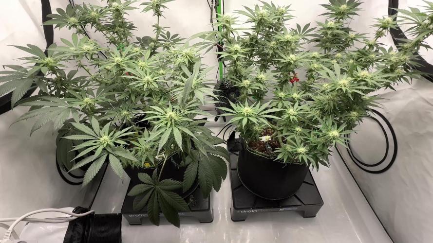 Girls are gonna be the biggest yeilders thanks to thoes skittles and hybird gentics coming from this strain donating its sativa high yeilds to this plant , two are late flower one is still stretching and is the biggest girl in the room by number of leaves and size , these strains end LST to provide enough space and light for these girl to promote there best traits . Feeding these girls are modest and not overall big feeders so it's not bad growing for beginners these girls will need to get a good few of there fan leaves removed to promote airflow and heat exchange