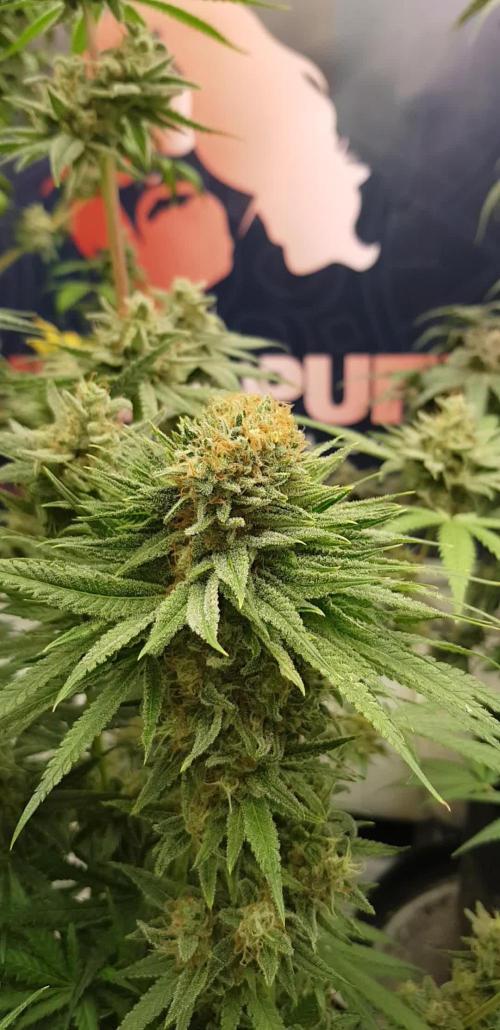The canopy is nicely even, suggesting that training earlier in the grow paid off well. Some lower fan leaves are showing slight discoloration and minor nutrient wear - normal at this stage as the plant redirects energy toward finishing its buds. The leaves' darker tone and slightly glossy texture suggest nutrient levels are still balanced, though it might be time to begin thinking about tapering off feeding soon and preparing for a flush.