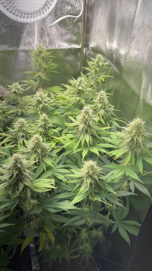everything is going very well, the girls have developed, we have found a hermaphrodite, what a surprise my colleague got when he found one with eggs, what a scare! I saw a video of a Mexican whose technique consists of breaking the male balls and letting the flower clean and do it every day as soon as new shoots come out, there comes a time when they no longer grow and only the female hairs follow, I will see that That's how it goes, if I can, when I visit the indoor, a photo of the hermaphrodite will be taken, only one of the girls, I don't know if she got stressed or what happened, the others continue to flower normally, big beautiful females, I'm amazed, how many showed my first crop, I see it great what do you think friends