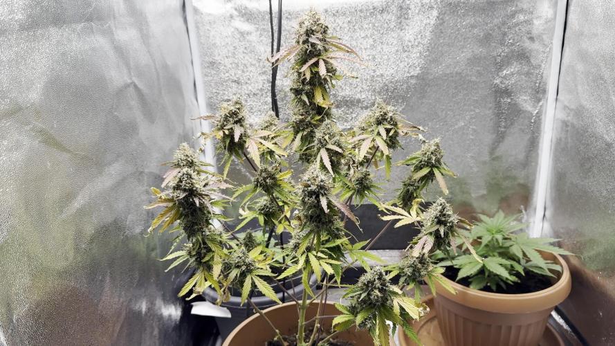 Day 66 getting close, may harvest tomorrow. I took 2 plants to my brother and he was impressed enough to order some MARS HYDRO and such. We put the 2 plants I gave him in the yard until he gets a closet setup. So my harvest will just be 2 plants. But hey, I'm no longer his gardner haha. Posted a few pics the trychomes today are starting to turn. Happy happy. Day 69 we drove by a dead skunk today and my wife started waving her hand in front of her nose while lowering the window. I couldn't smell a thing. So I guess that's why I clicked, smells normal.