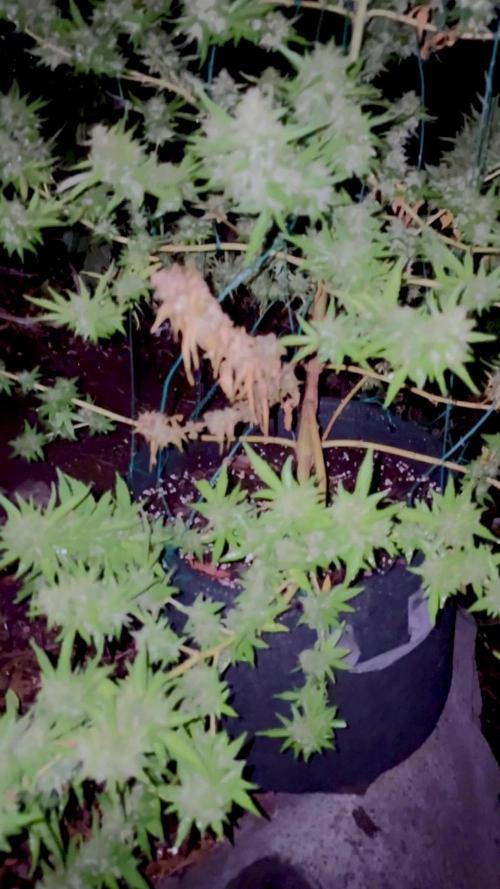 Trichs are startin’ to cloud up, and the smell? Bruh, it’s gettin’ loud in here, like a bass drop in the club. We’re just lettin’ them do their thing now, and it’s lookin' like we’re on track for some serious heat. That front-left queen, she’s gonna be somethin’ special when it’s all said and done.