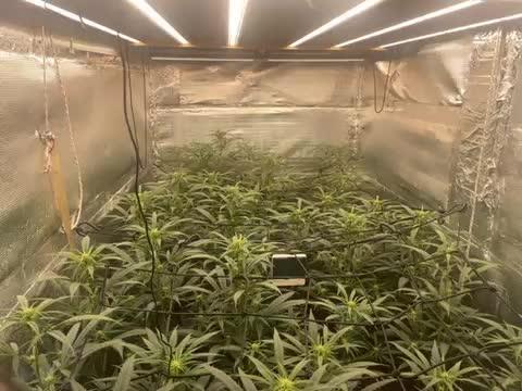 Day 31: Yesterday I squeezed in one last round of LST, the main stem cola was rising quite high above the rest of the canopy, I pulled that down out of the way and by the end of the day It had sorted itself out, I also spread out some of the other new cola sites to expose deeper into the plant to more light