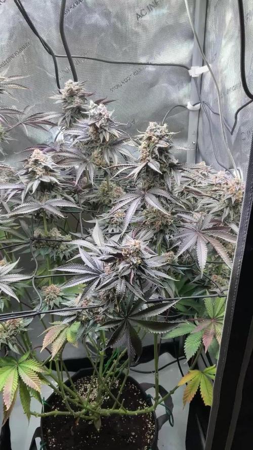 11/4 130am Lights up to 77 watts 4.3 grams Maxi-Grow powder this week. Using mix from last week. Will probably switch to Bloom by Wed. 11/5 12am Canopy Creations LST things are great resistance training builds huge branches!!! They are amazing. 10am growing fast and big after today’s watering!!! Garlic muffin and fatso have the thickest branches that I’ve ever seen the side branches are thicker than what I got when I was growing in bigger containers so these nutrients and the soil and this light wattage seems to be a good formula I have to save this and work on it And stressing with the Canopy Creations has doubled the diameter of the branches that I have been stressing. Just great results. 11/6 Galic is the strongest so far her branches are THICK, a perfect 4 cola grow. Each of the 4 branches are as thick as the main stem on my first few tries at this. 12am They were all dry gave water probably last week using Grow switching to Bloom nutrients. Extremely strong plants from Seedsman!!!! When I finally got them going I found using Maxi-Grow & Rapid Start made a huge difference!!! Only Rapid Start for the first week. 11/7 1am GM & CA are huge now!! lights up 89W as the leaves fold up a little for the heat I will raise them an inch or so. 1pm did water today. They are starting to flower 11/8 12:30am Switched to Bloom nutrients yesterday after the last feeding with Grow they all went to sleep right away after that and are waking up now with flowers forming. I will use 4grams Bloom, 0.4 Purpinator, 0.5 Rapid Start, 0.4 Silica, 0.4 Cal/Mag. Silica causes fluctuations in pH. 2am Galic is a MONSTER, and Seedsman is out of them. Fatso is next for size. I can not believe how huge the branches are this technique of 4 colas in a small 1 gallon container. These plants will be perfect for this 9am LST crazy day!!! I have never been able to train the small set of first branches that come off the first node on plants before until seedsmen Faso and garlic🤩🤩🤩🤩🤩🤩🤩🤩😍😍😍😍😍😍😍😍😍😍😍😍 11/9 1am flowering I might have to split them up into 2 tents they are all getting bigger than I thought they could, this is just great! after 20 fails I think im getting this small grow style worked out. 1:30pm moved the RSQ's into tent 3. Tent 2 not big enough but I'll make it work. Once I harvest the plants from the 🎃 Halloween All the Darkness grow it will be easier. Galic & Fatso by Seedman are HUGE very thick branches, thick side branches responds to training extremely well. Strongest F1's!