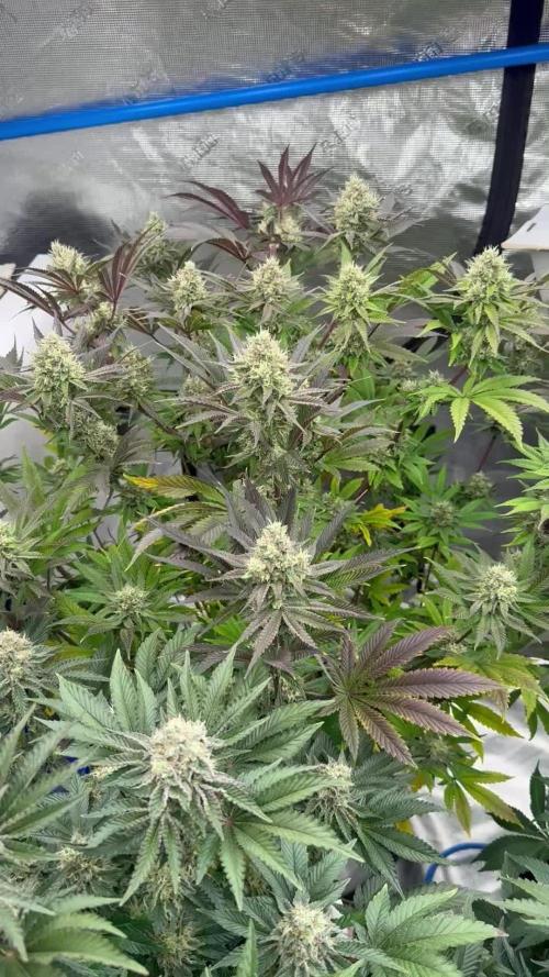 2024/05/18 : gave last shot of bio PK yesterday and let plant do its thing alone until the end. Smell is more present with a subtil "wet dog" touch.😅 I'm glad to see first sugar leaves turning purple! While reseting plant after flush, I may have half-broken one of the main colas, it's still alive for now. The height is 50cm so I had to move up LED : thanks to secret jardin system, I still have room with 30cm between lamp and plant. I cranked up DLI to 38~48 : TS1000 is almost at max. As it is, fan leaves are 27°C and colas 28°C : perfect. Leaves that were yellowing are still yellow but it seems there are no new ones : I don't like to see yellow before late flowering. Maybe 20cm was not enough for higher leaves.