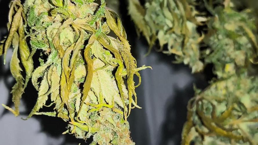 One of the most exciting changes this week is the first appearance of trichomes on the main bud. Under the light, they’re starting to sparkle, hinting at the resin production that’s about to take off.