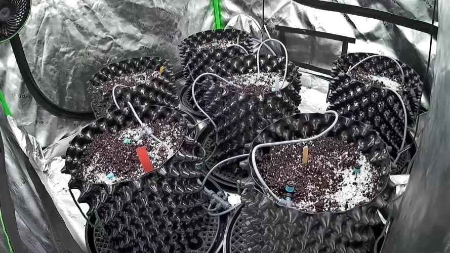 End of Week 7 CO2 is definitely increasing growth rates but also changes the game with controlling your environment now that it has to be sealed in order to not waste CO2 unnecessarily. You change one thing and it adds many other variables to keep everything in check. I am learning everyday and that's why I grow. The trellis net is doing its job and the canopy is looking nice and even. I also added a soil top-up and top dress of some BioBloom and Mycorhizae so it can start breaking down before I flip to flower next week (Slow release dry organic amendments). And the ladies are using up nutrients in the soil much faster because of the added CO2 (another variable to take into consideration - faster growth = faster nutrient consumption) In detail: -Carefully removed trellis netting -Ammended each plant individually with my soil mixture and nutrients -Placed them back in the tent -Reinstalled trellis netting and trained the ladies to shape Pest Report: Thrips VS Ladybugs... I decided to fight fire with fire - I purchased Swirski-Mites from Koppert (They are beneficial insects that feed on the eggs and larvae of thrips and other unwanted pests). As for the adult thrips - I got very lucky and found about 10 Ladybugs in my garden and decided to introduce them into my grow room as they will feed on adult thrips and any other unwanted pests. I did not spray any insecticide this week and it really seems like the ladies are happy with my new method of bio-warfare and are wilting less and less often