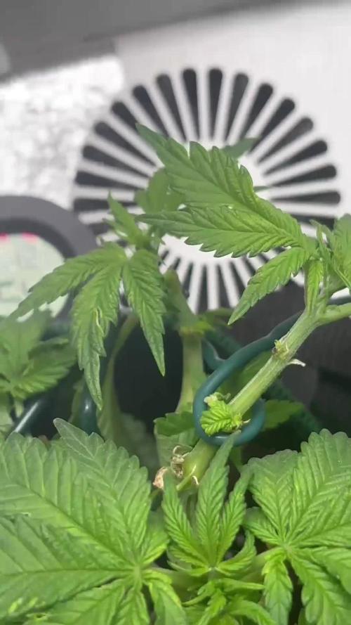 Day 32: Cosmo looking good overall. Slight clawing on top fan leaves. Might be a little wet or maybe a bit too much nitrogen. Will let dry back and straight water next feed time. Tent Temp: 77º RH: 51% PPFD: 800 VPD: .67kPa