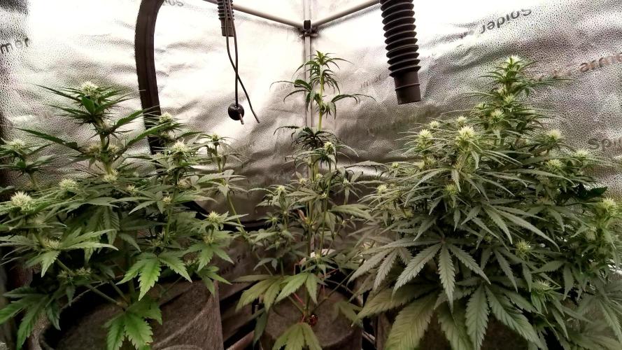 Ciao a tutti! Sono veramente senza parole per la quantità di terpeni e tricomi, mai avuti risultati simili. Devo dire che la linea advanced nutrients sta facendo tutto il suo dovere, non ho mai sentito un profumo così, si sente anche fuori di casa. Ho defogliato ancora tra una rete e l'altra andando a eliminare tutte le foglie che erano inutili, per evitare rischi muffa (visto anche l'umidificatore acceso) e per far sì che aria e luce non abbiano impedimenti a circolare liberamente. Penso che manchino 3 settimane, dalla prossima inizierò con l'overdrive per far sì che la pianta inizi a scaricare tutto quello che ha. Sono veramente soddisfatto, senza parole. La prossima volta metterò solo più due vasi e due strain, per ridurre il consumo di acqua e fertilizzanti, ho visto che ce la posso fare tranquillamente e più o meno nelle stesse tempistiche, visto l'eccessivo allungamento avuto questa volta. Una nota di merito allo strain, la barney's non delude mai ma la mimosa evo è veramente top, lo scorso anno ho fatto quella normale stavolta per orange punch e devo dire che è lo strain migliore che ho messo finora. Bene, continuerò a rifarmi gli occhi, a settimana prossima! 🤣 🍀😎💪🏼🔝