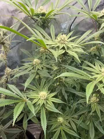 The dance of the buds stretching around the colas has come to a natural pause, ushering us into the swelling stage. Each day, we're greeted by buds that are increasingly plump, a clear indication that they're on the right track. As they swell, our plant is starting to exude a sophisticated sweet lemon aroma that fills the air and promises a sensory delight. It's a fragrance that speaks to the complexity of her development and the nuanced profile we can anticipate. Notably, some leaves in the lower canopy are beginning to wilt, a process I view as normal age-related defoliation. It's a natural part of the lifecycle, as the plant focuses her energy on the swelling buds. In our efforts to optimize her environment, the GCX 9 lighting is now set to 100% flower spectrum and 75% veg spectrum. I'm carefully pushing the limits to provide maximum light without imposing stress or damage to our plant. This stage requires a delicate balance, pushing for maximum growth while maintaining the health and well-being of the plant. I