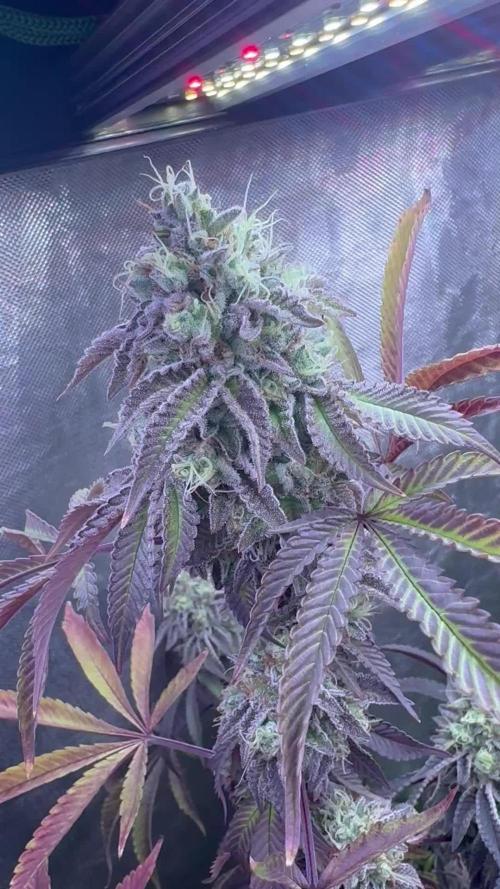 I'd also like to mention the colors coming from both plants where the buds are nearly done. Lots of purple hues. You can't really see them from the small sugar leaves and frost covering it. But it's there.