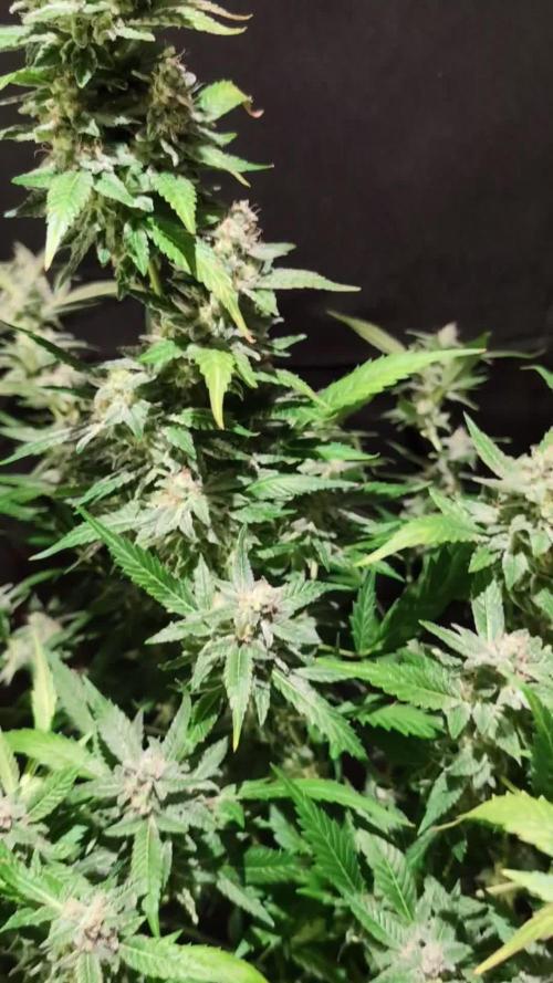 La planta se desarrolló en una maceta de 30L y ha producido 150g de cogollos secos, muy duros y con una relación flores/hojas excelente..