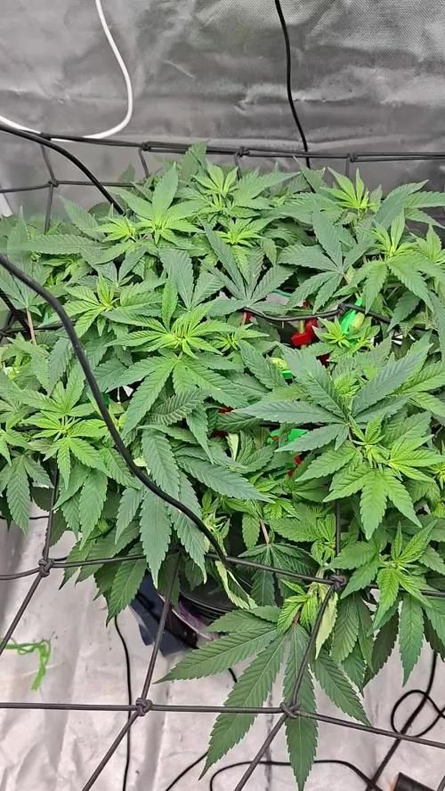 Watergift: 1000 ml, met 0.2 ml Silica Power per liter, 0.3 ml CalMag per liter en 1 gr Calcium, 0.6 gr Hybrids en 0.4 gr PK+ PowderFeeding per liter. EC: 1.7 PH: 6.2