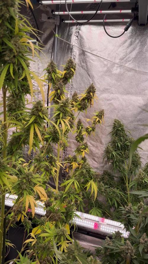 Date : 15 octobre 2025Observations :Les plantes ont doublé de taille grâce au stretch typique de la phase de floraison.
