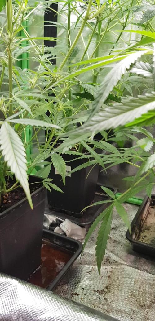 Hey guys! New week, here we are! As always, every Sunday is cleaning day. Took everything again from the tent, washed the saucers. Was also time to cut down some leaves as it was starting to look very bushy and hard for the light to get through it. During that time, came across with some bugs under the foliage, which isn't a great sign for sure. Not to mention the fruit flies that move in and are making my life a little chaos. Reducing now the RH a bit, and watering now on every 72h instead of 48h to keep the grow as dry as possible. Increasing the ventilator speed was another attempt, it so much air circulating should be hard for them to make a living inside. Just put now more of those fly traps and will add a couple glasses of cider vinegar here and there, as it attracts most of the flying things with success. Note that some plants are yellowing and that's never a good sign. Though for few weeks it was Nitrogen deficiency, but after increasing it and the CalMag values, the problem persists, so I'm inclined for something bug related. Besides that, temps are still very stable, RH was changed, now to 40% tops, and the light went a little lower to get it closer to the plants - always with the light burn effect in mind. 40cm is the line between the tops and the lamp. Flowering is looking good, buds are forming well and seems that's gonna be a good ending if I can keep the bugs under control. She's on pre-flower, switched the nutrients and increased a bit the feeding volume. That's all folks, have a great week