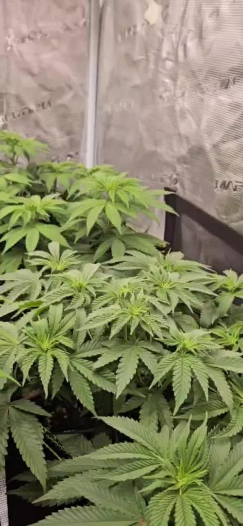 🌿Week 4: Defoliation & SCROG Setup Week 4 was all about structure and airflow. The canopy was getting bushy fast, with a ton of inner growth, so we went in for a solid defoliation session across the board. Lower fans, overlapping leaves, and shaded internodes were cleaned up to let light penetrate deeper into the canopy and reduce potential humidity traps. Right after that, we finally dropped the SCROG net, stretched out gently across the canopy to guide the branches horizontally and prep for flower stacking. Some of these phenos are already reaching for the sky, so the timing felt just right. Captured a full-time-lapse clip of the defoliation + netting process. It’s super satisfying watching the chaos turn into clean lines. Nature meets intention. Feed Bloom since 20/6 22/6 Defoliation 🌱 Plant Response: After defol, they bounced back fast. Tops are perky, leaves are praying, and stretch is continuing in a controlled way. The structure’s more open now — better airflow, better light distribution, better everything.