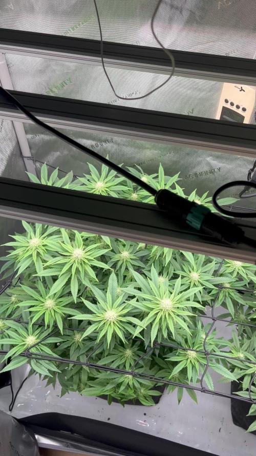 Hope everything's going well for you. Unfortunately, it's still way too hot here. The outside temperature is 29°C, so it's pretty similar inside the tent. I do have a portable air conditioner, but it would have to run constantly, and that's too expensive for me. That's why I’ve increased the humidity a bit. Otherwise, they look healthy and the buds are getting bigger. I removed two leaves from the Tropical Marker that seemed a bit burned — at least that's what I suspect.