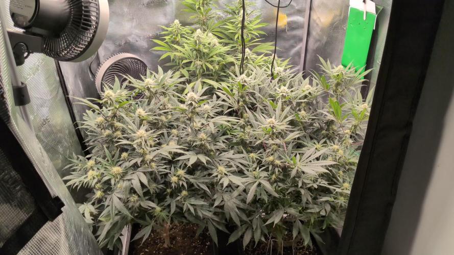 With the onset of pistils, Purple Wedding Glue saw a rehoming with an entirely different set of environmental parameters, namely slightly higher DLI and a crash in humidity to 50-55% that she accepted with grace and poise followed also by a jump in nutrition with the start of her flowering solution minus the first week of flower K dose. And that’s where the complications set in…