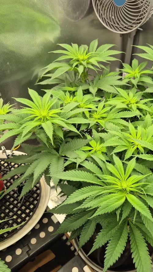 9/29/21 - We are marking today the first day of veg. That Mars Hydro TSW 2000 is doing a great job at 50% power. The plants all look great today! 9/30/21 - They look good. We are giving them water with no nutrients for this week so they will transplant nicely. 10/1/21 - They look great! I’ve been misting them in the morning. Soil is still wet from the transplant watering. We are waiting on fans and a scrog net. 10/2/21 - They are looking very good today. We mist them daily, sometimes twice a day. 10/3/21 - All plants look great! We stopped misting them for now. They look over watered a tad. We know it’s early but we started LST on a couple of the taller ones. 10/4/21 - Looking good! Just cruising along at 50% power, watering when dry. I know they won’t be low maintenance in a couple weeks when they are bushes. 10/5/21 - They look great! The ladies in the back are doing some LST still since they are much taller. It’s safe to say the roots are expanding and the plants overall are growing.