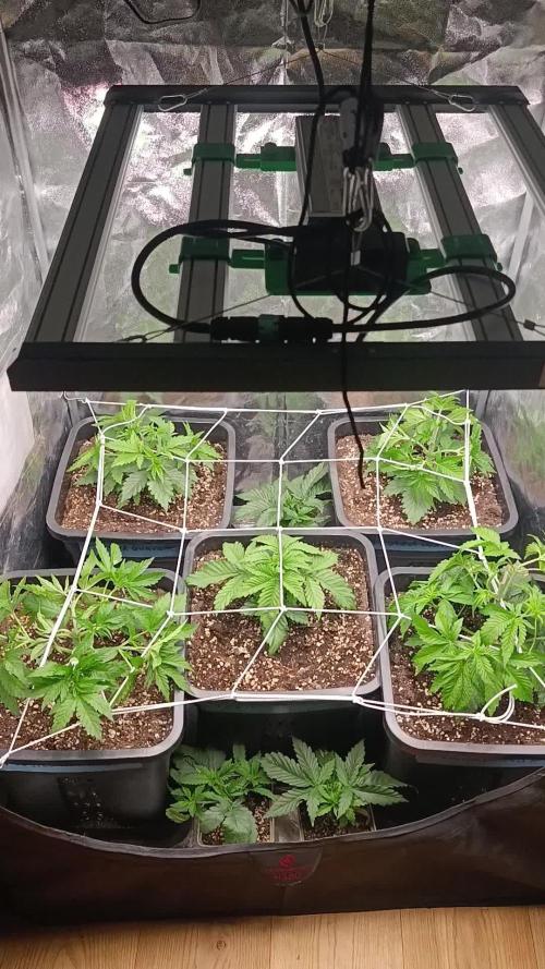 this is the beginning of the 4th week along with the publication of the end of the 3rd week, this is how the fourth week is received, another intensive pruning that has no choice but to do it due to the size of the indoor, which is working great for us and we believe that I will always work like this, I am happy, here then the pruning of its results a little before and after and how it is receiving this fourth week, with the threads I touch a little bit of hair I hope it does not affect much but all in favor of opening the field to all the branch buds alike.WE CHANGE THE MESH FOR A BETTER ONE AND OF THE IDEAL SIZE AND AGAIN WE USE THREADS THAT HELP US VERY WELL, WONDERFULLY