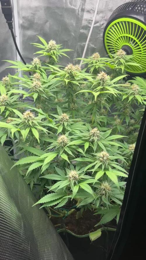 She's doing good.. I removed the very top node that I left.. Lol.. Yeah I can be very indecisive when it comes to that stuff.. Can always just remove one later if I need too.. But yeah.. I've kinda just been tucking the top 2 branches under the bottom 2 branches so that the bottom 2 can get some good lighting too.. So I try to switch once a day or sometimes twice a day.. Once the tops grow a bit more they should all be able to get their own light without the tucking and whatnot.. But still just been feeding toward the beginning of the week and just plain pH'd water toward mid/end of the week.. The runoff pH is a little acidic.. But it doesn't seem to be hurting anything so far.. The roots have made it to the bottom of the pot.. They did a long time ago, but have really filled the pot alot already.. But I've pushed plants alot longer in much smaller (veg for 6 weeks in a 9oz solo cup).. Her branches are so thick and sturdy! She is gonna be so strong!.. I really need to make sure I don't LST too late cuz it's gonna be hard to bend these tree trunk branches.. But I'm playing with her at least twice a day, so I doubt I will miss the opportunity lol.. But I can't wait to taste some Blue Berry!!! On to the next week!...